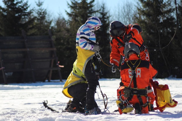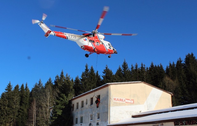 Odborný záchranářský personál služby SAR vojenské letecké základny v pražských Kbelích tento týden v Krušných horách školí posádky leteckých společností ČSA a Travel Service.