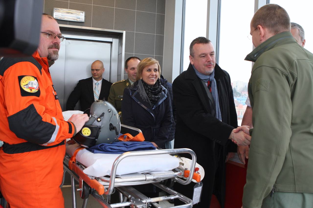 U historicky prvního příletu vrtulníku PZL W-3 Sokół nechyběla hejtmanka Karlovarského kraje Jana Vildumetzová ani ředitel Agentury vojenského zdravotnictví Armády ČR brigádní generál Zoltán Bubeník.