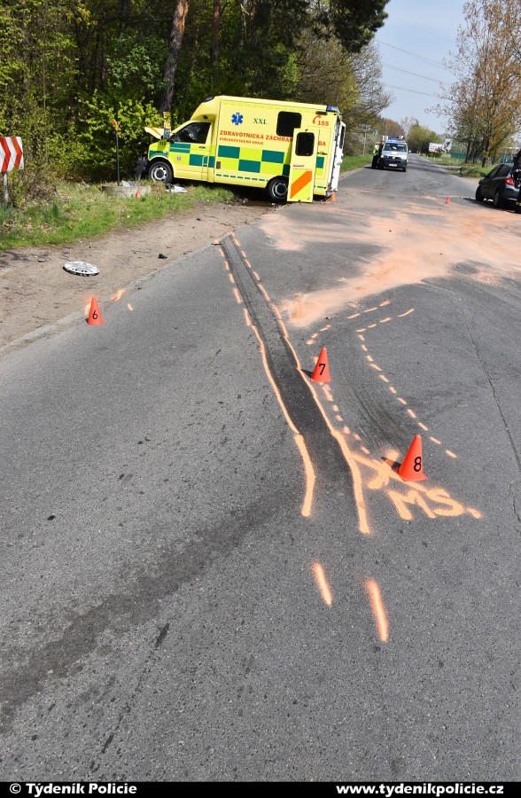 Kladenská posádka RZP jela se zapnutou sirénou a majáky k případu, když jejich sanitce dle dostupných informací vjel do cesty z vedlejší silnice osobní automobil. Došlo ke střetu, přičemž sanitka po nárazu vyjela mimo komunikaci, kde se následně ještě čelně střetla se stromem. Oba záchranáři utrpěli při nehodě středně těžká zranění, jejich kolegové je po ošetření a zajištění převezli k další péči do kladencské nemocnice. Tam putoval k dovyšetření pro vyloučení zranění i řidič – senior z osobního vozu.