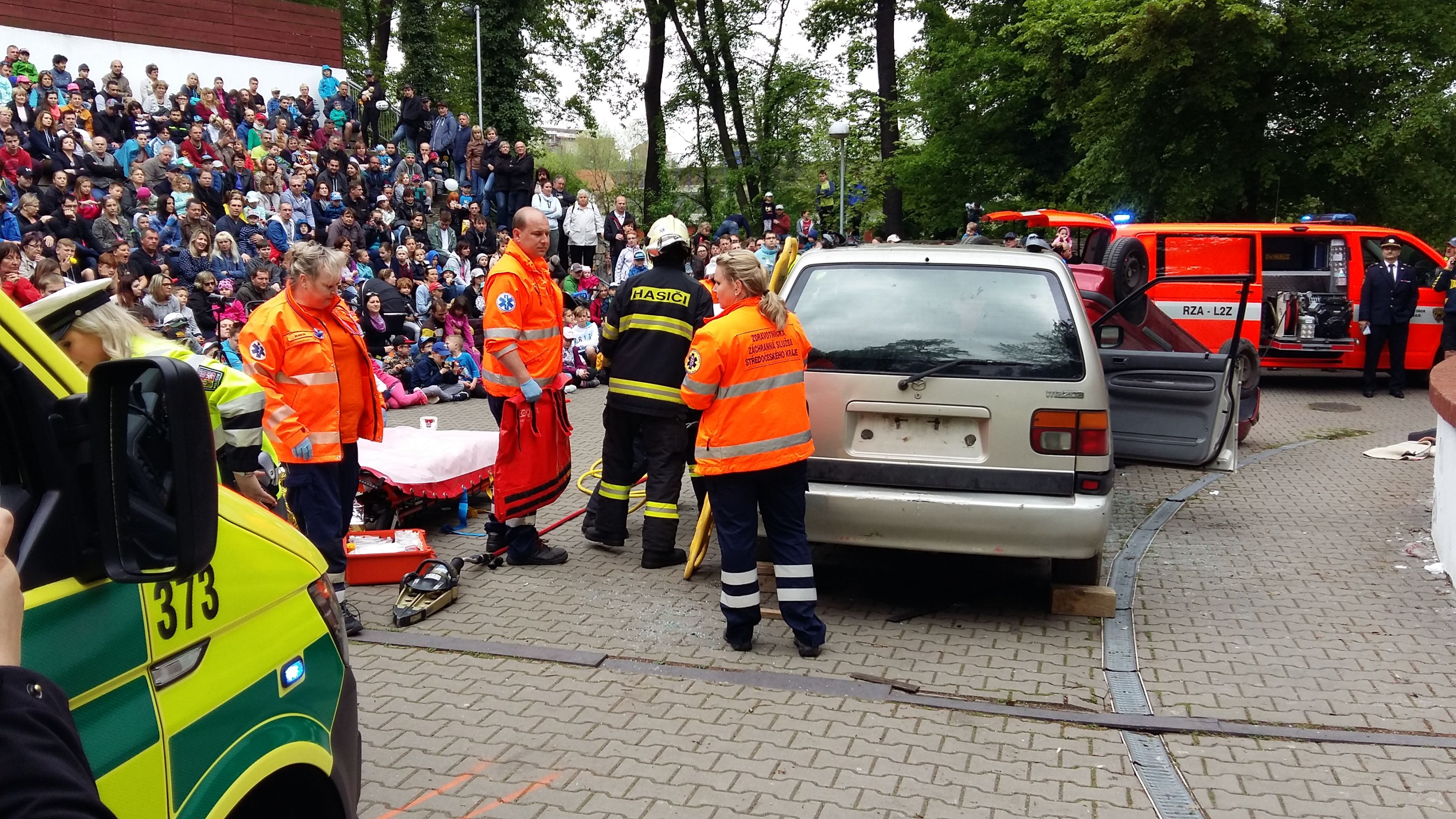 Už na Karlově náměstí bylo náročné probojovat se ke stanu a sanitním vozům středočeské záchranky, kde probíhala ukázka resuscitace a prohlídka vozů a jejich vybavení. Posádka rozdávala nové příručky první pomoci a letos poprvé rozdávali záchranáři i speciální brožuru „Malé medvědí povídání“ připravenou přímo na míru dětem, která i ty nejmenší jednoduchou formou pohádkového příběhu seznámí s pravidly první pomoci.