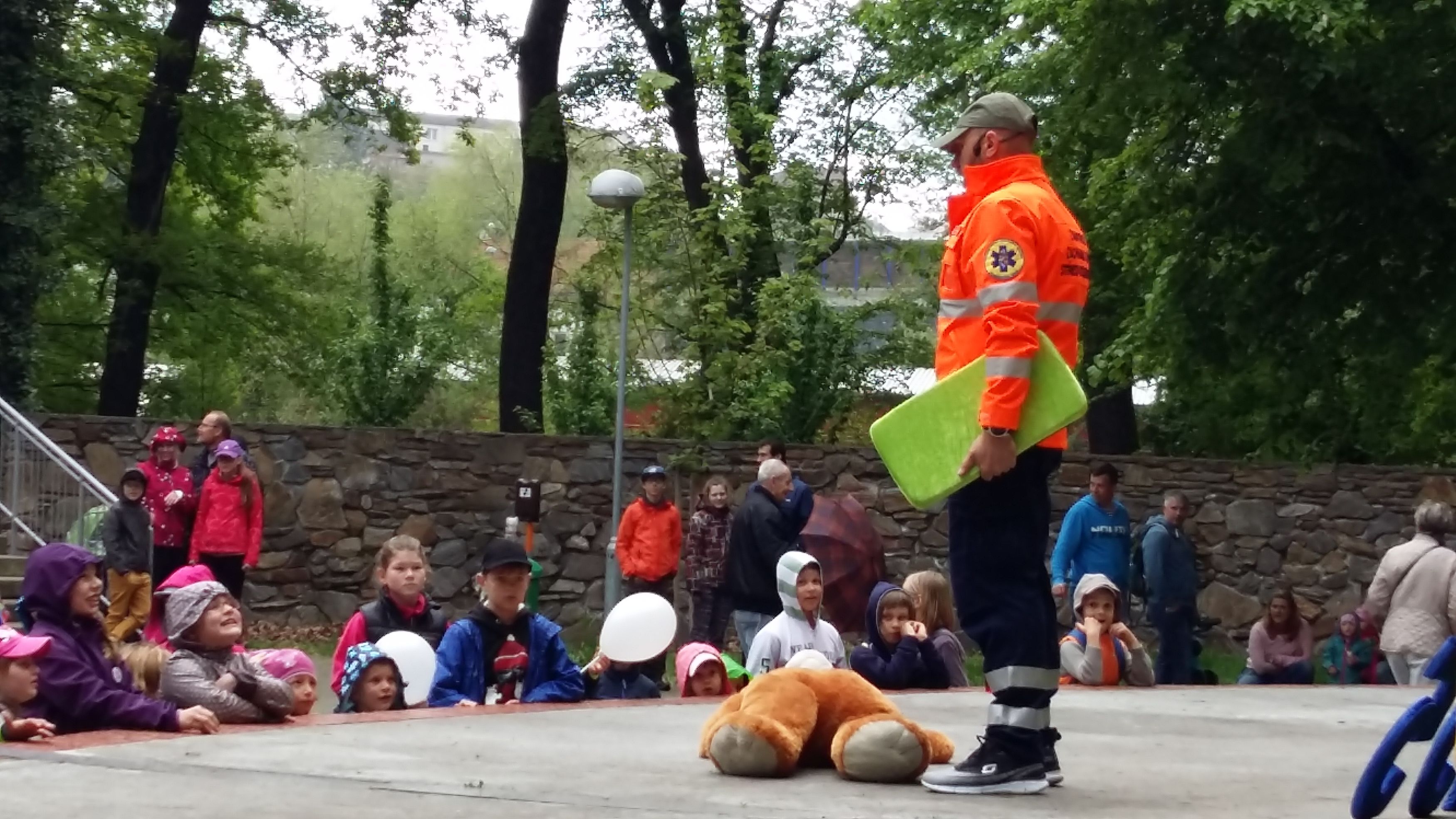 V 16:00 před dětské diváky nastoupil záchranář Marek Hylebrant, který publikum i přes vytrvalý déšť přes hodinu nejen bavil, ale zároveň v první pomoci vzdělával. Při svém představení s obří plyšovou sanitkou a pomocníkem – plyšovým medvědem – udržel pozornost těch, co měli pláštěnky a deštníky, a rozesmál i část dospělého publika.
