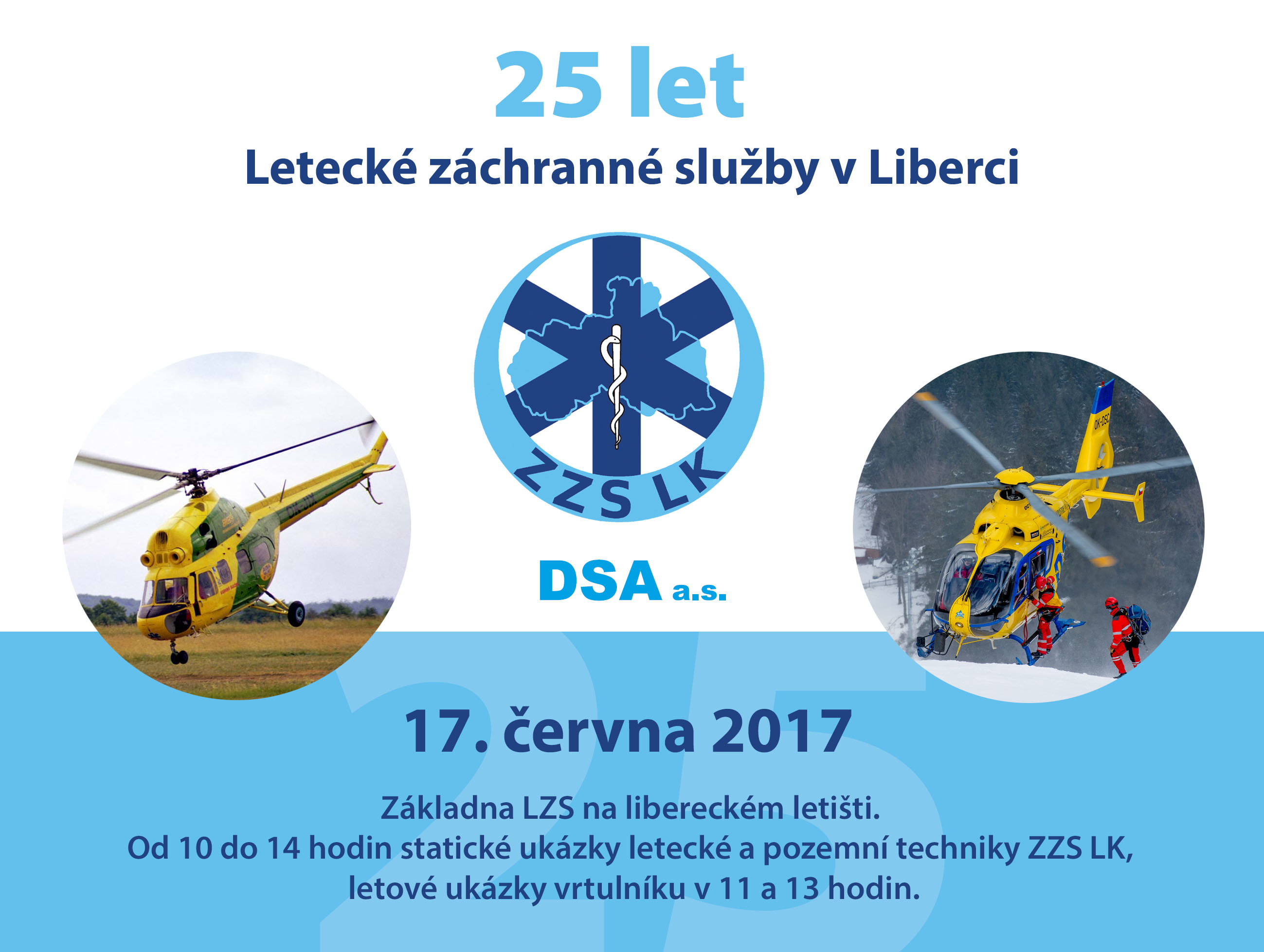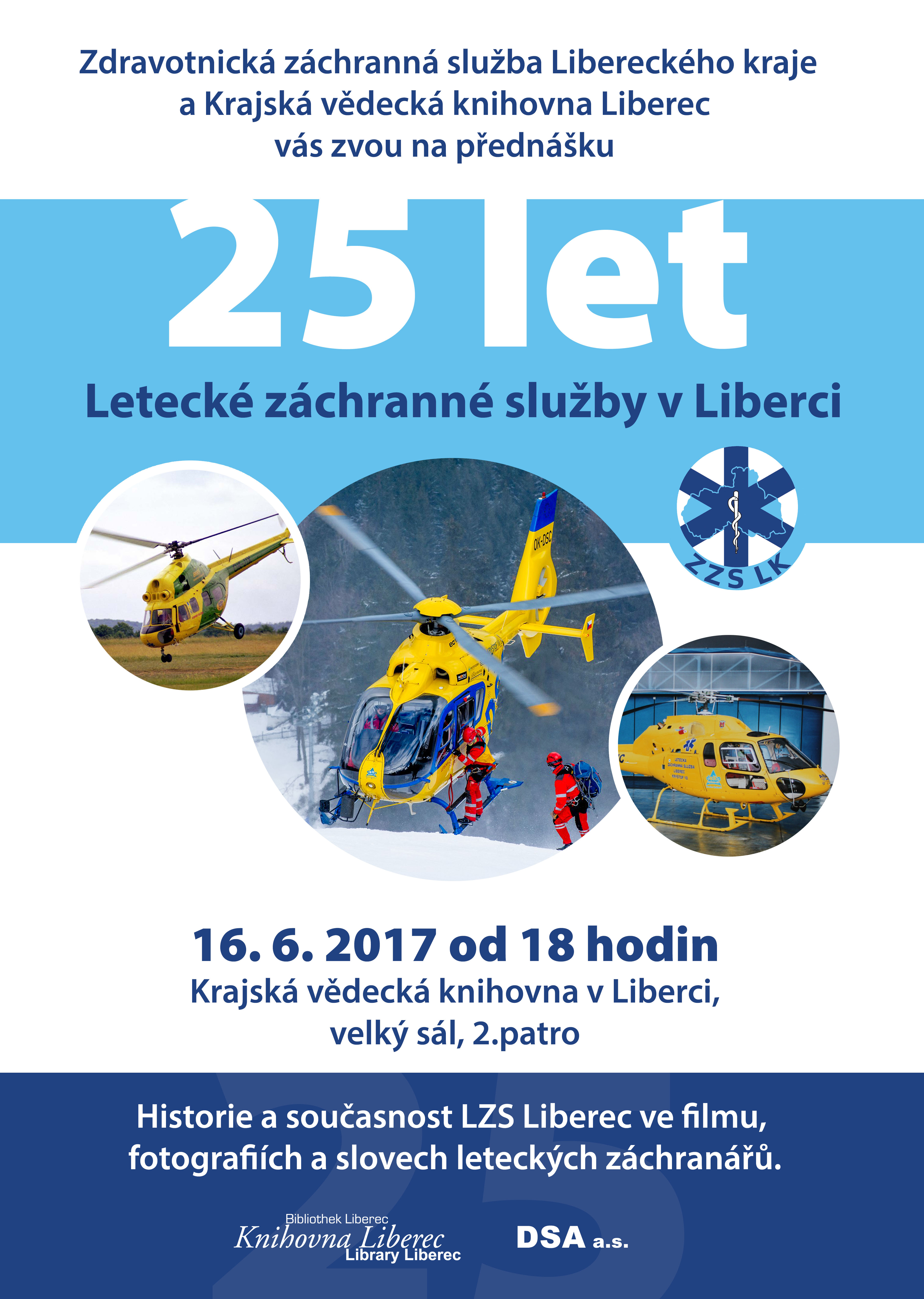 Dovolujeme si Vás informovat o akcích pořádaných při příležitosti 25. výročí Letecké záchranné služby v Liberci.