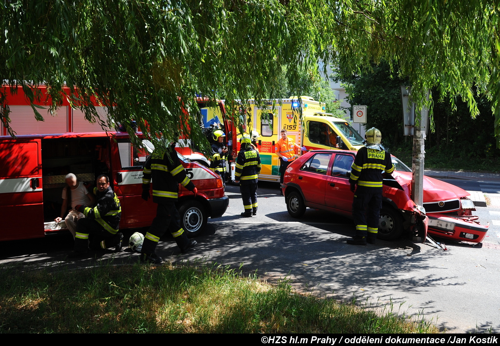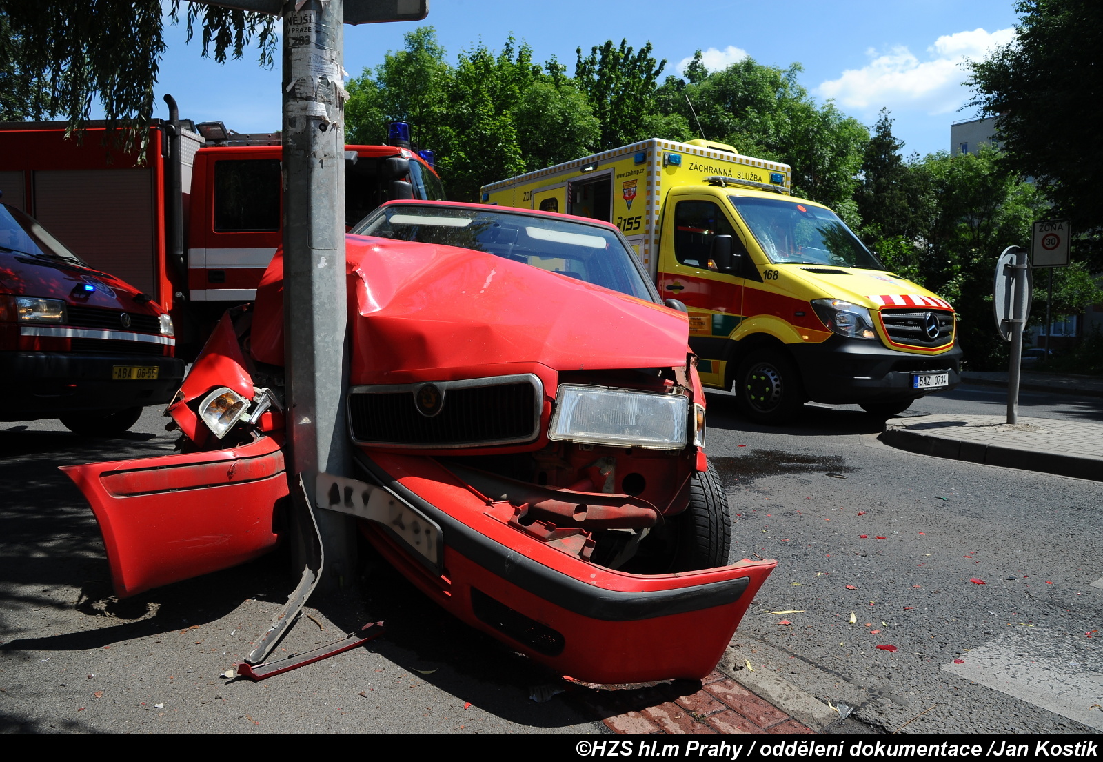 Jednotka hasičů ze Strašnic zasahovala od 13:56 hodin dne 15.06.2017 v ulici Práčská v Praze 10 u nehody osobního vozidla, které narazilo do sloupu veřejného osvětlení.