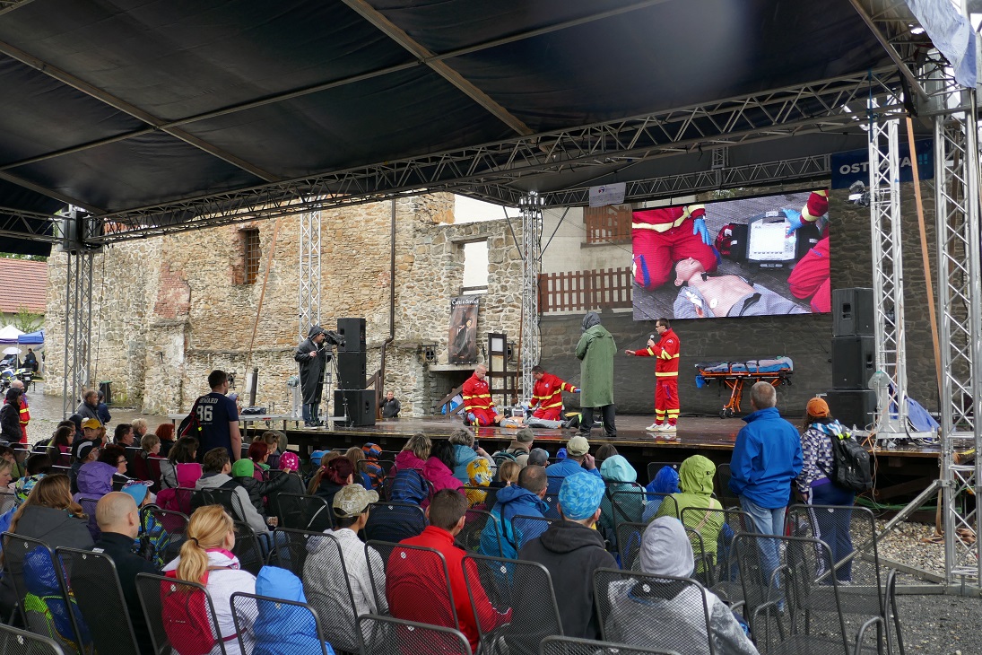 Posádky ZZS se účastnily v rámci dynamických ukázek spolu s hasiči a policisty simulovaných zásahů u dopravní nehody s vyprošťováním a ošetřením zraněných pacientů. Hlavní náplní prezentace ZZS ovšem byla činnost informační a edukační. Jednak veřejnosti představila svou práci a vybavení, a to ve stanu, na ploše před ním, stejně jako v sanitním vozidle. Dětští i dospělí návštěvníci si mohli vyzkoušet resuscitaci pacienta na modelech, a to za odborného dohledu, či výkladu, záchranářů. Za velmi živého zájmu probíhaly také komentované ukázkové resuscitace na pódiu v areálu hradu. Návštěvníky rovněž velmi zaujala prezentace týmu pro specializované činnosti a vybavení pro ošetřování pacienta s vysoce nakažlivou chorobou.