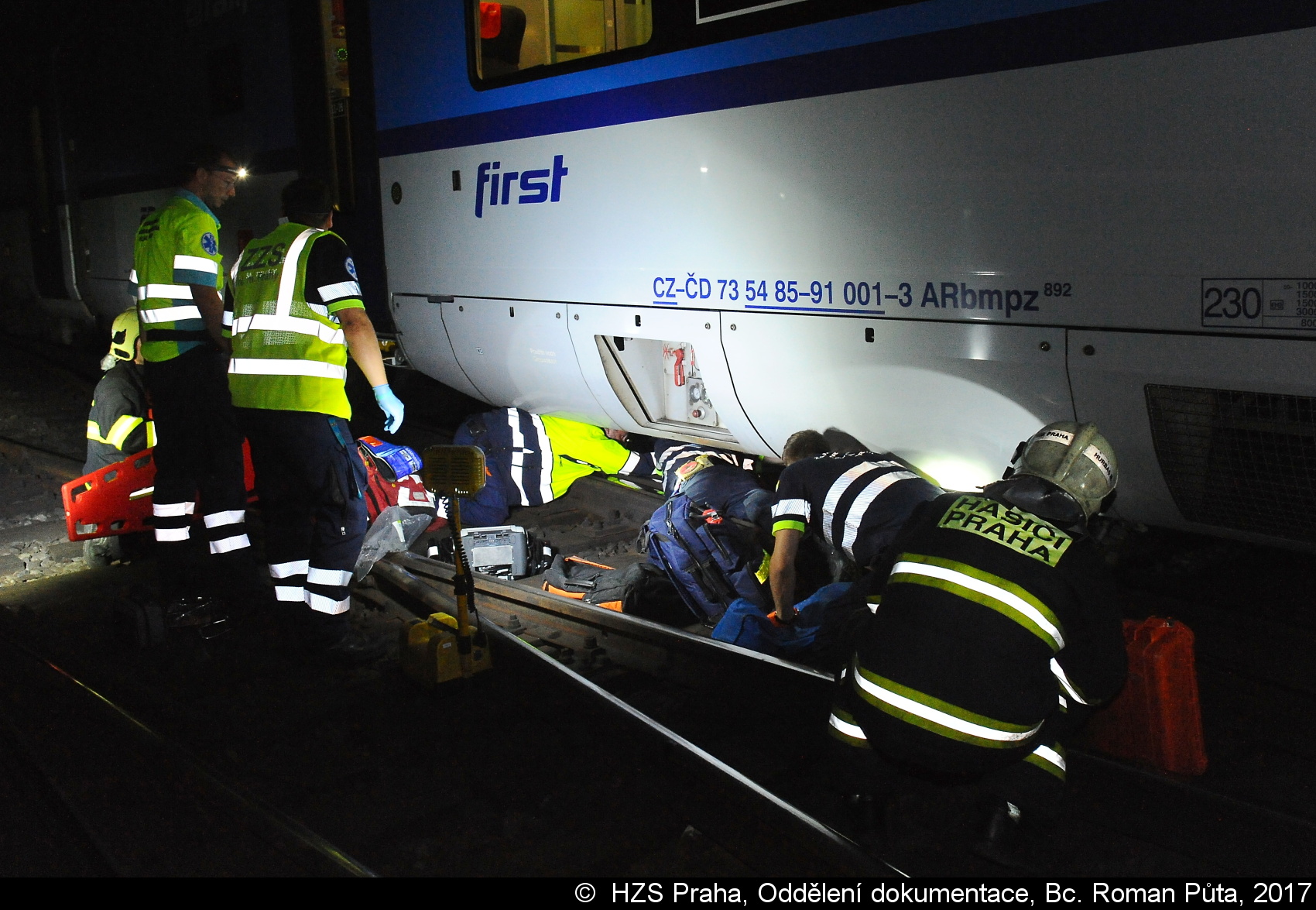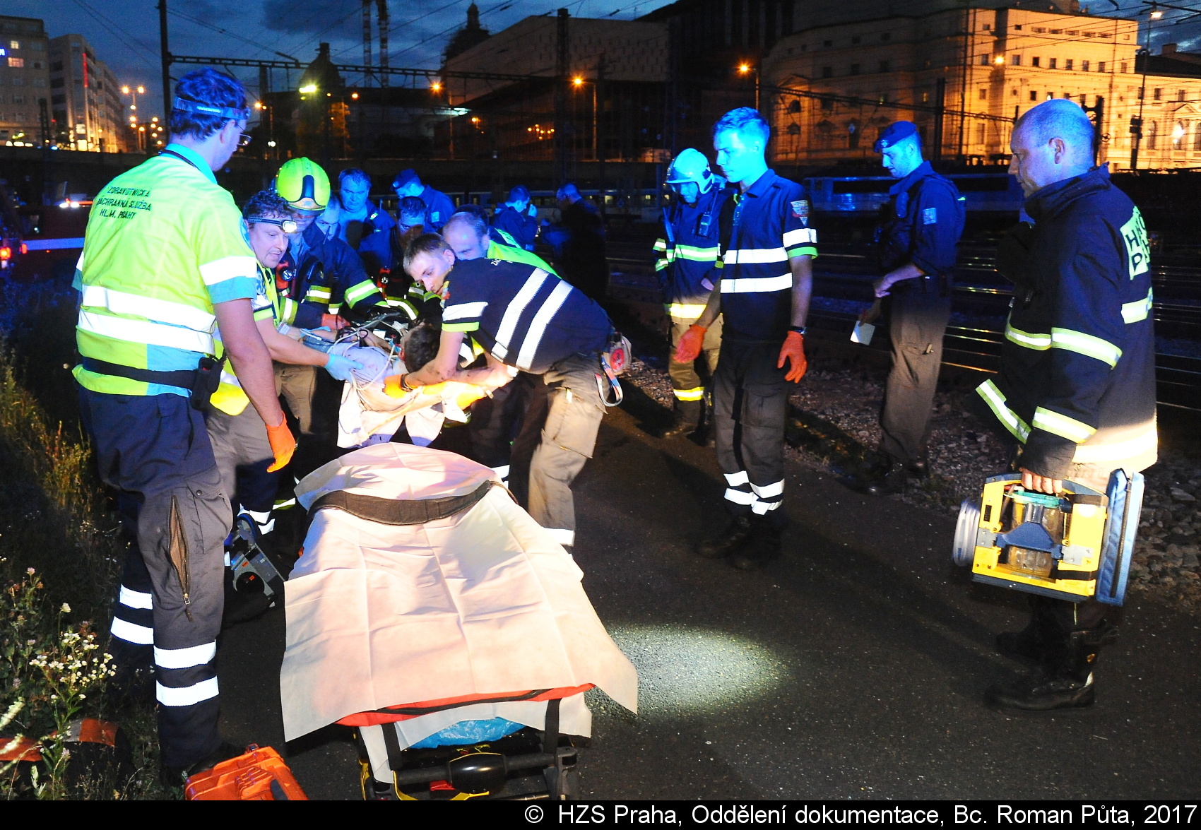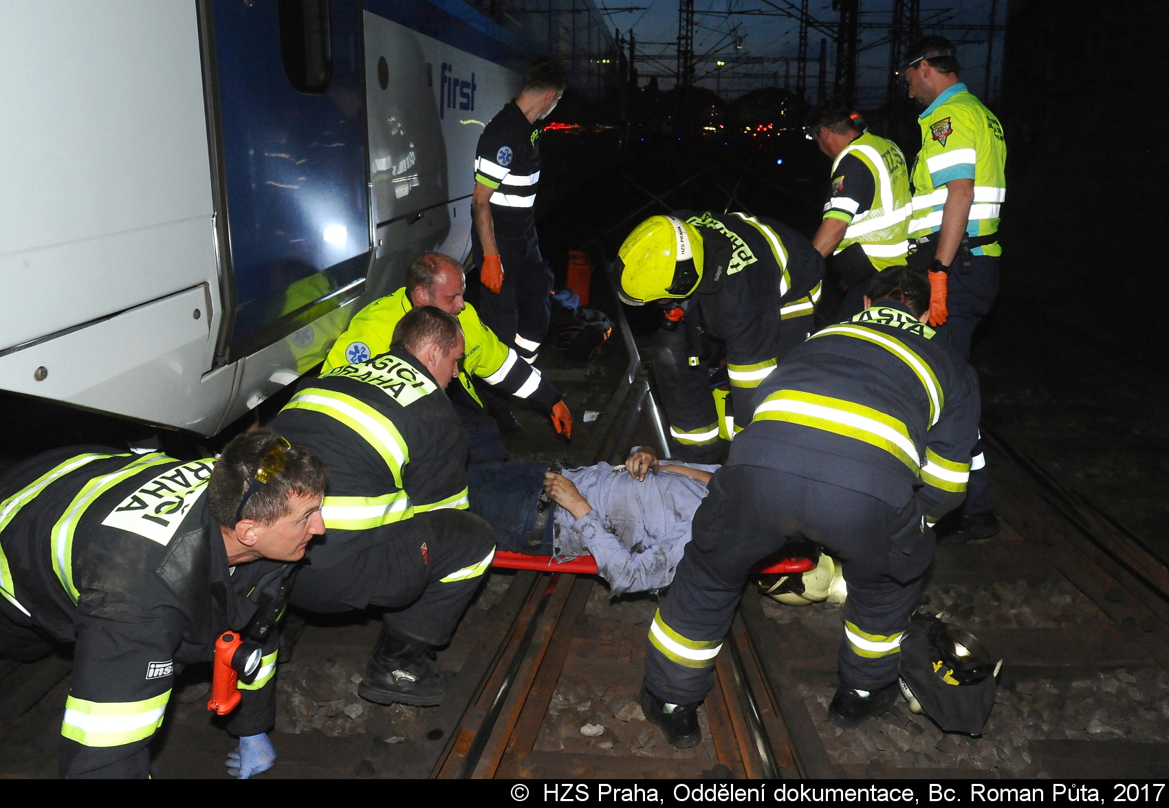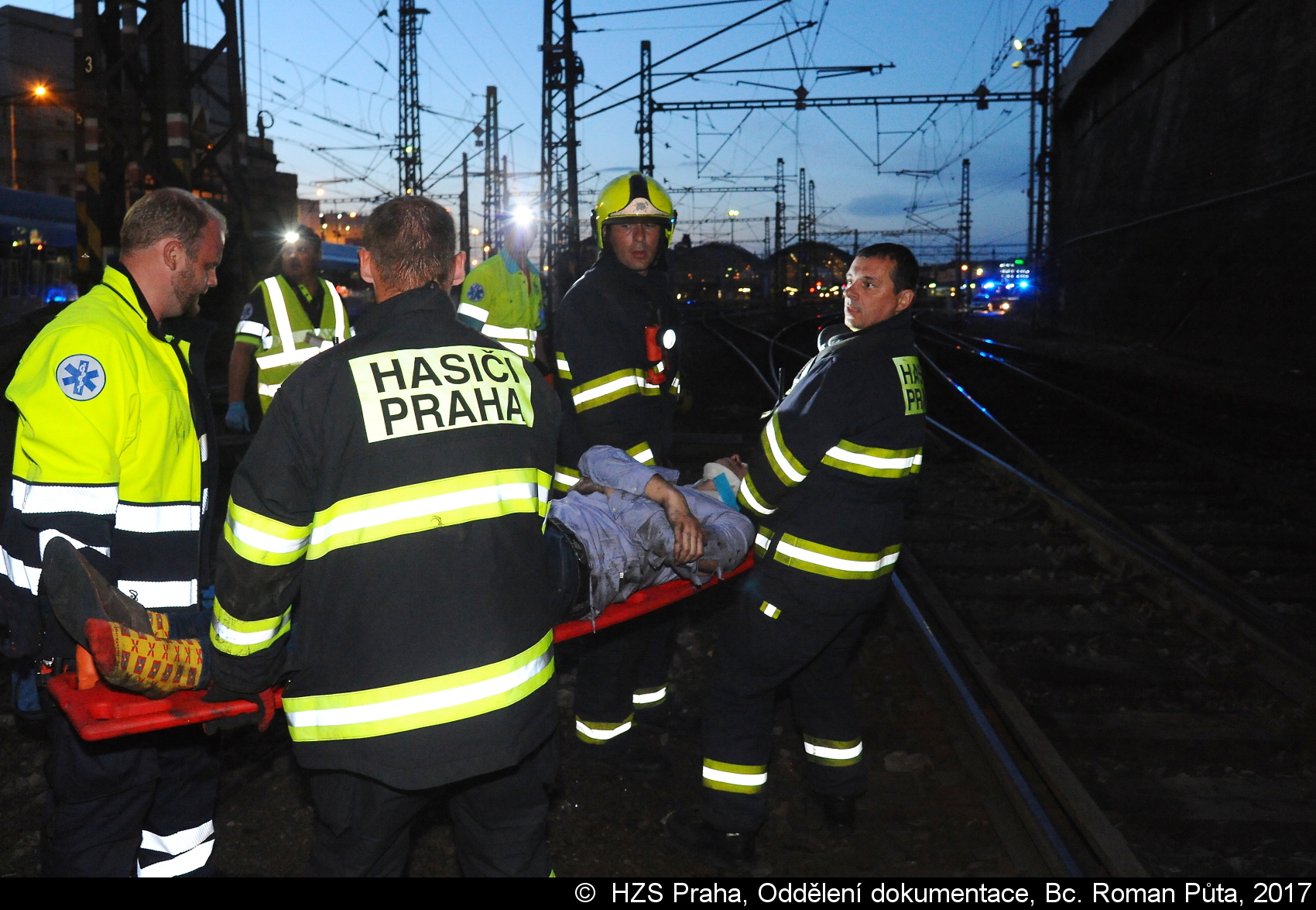 Jednotka z centrální stanice vyprostila osobu, která se zaklínila v podvozku vlaku a předala ji ZZS. Následně hasiči pomohli s transportem pacienta do sanitního vozu. Provoz na trati byl během zásahu složek IZS zastaven, uvedl mluvčí HZS Praha Martin Kavka.
