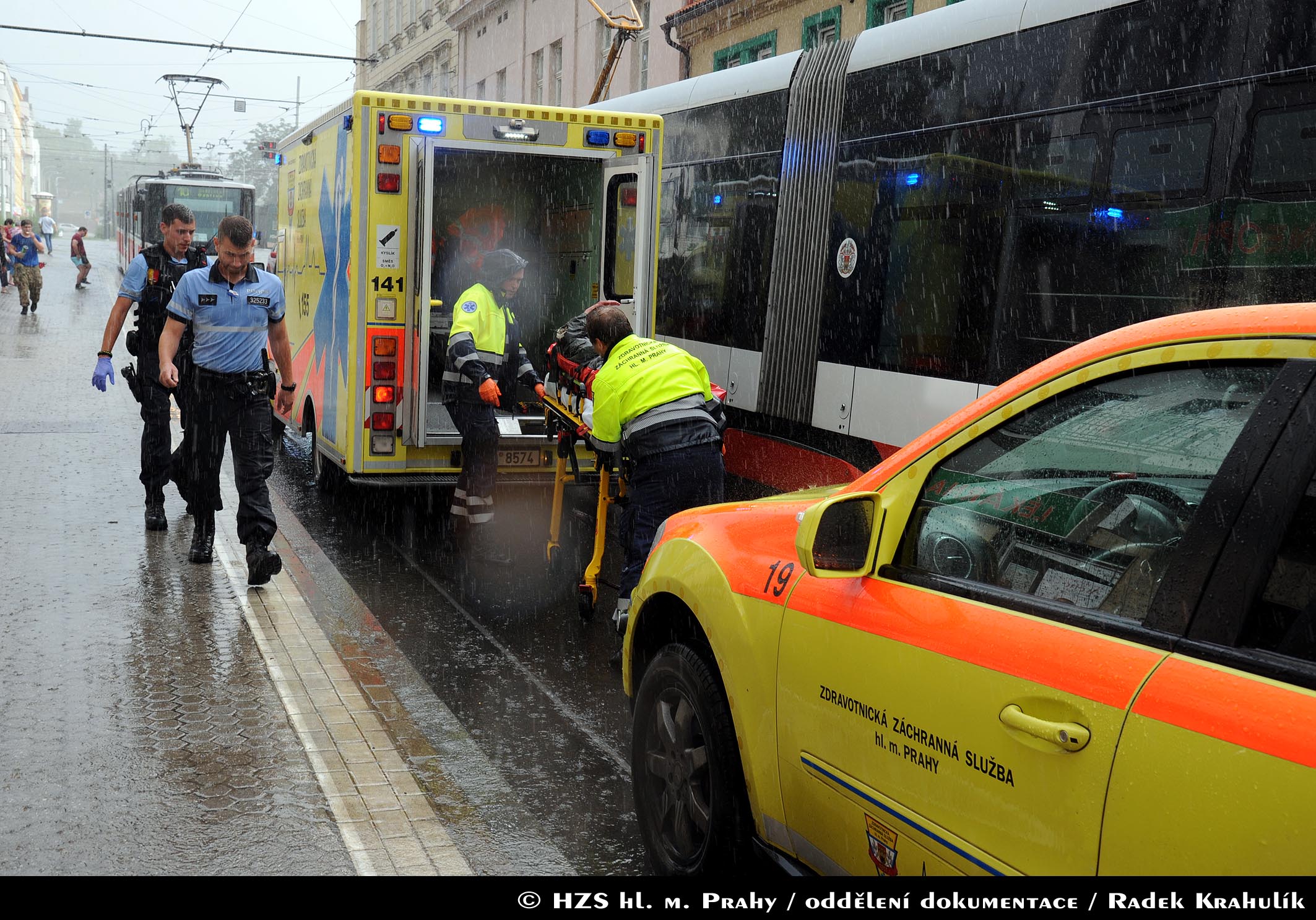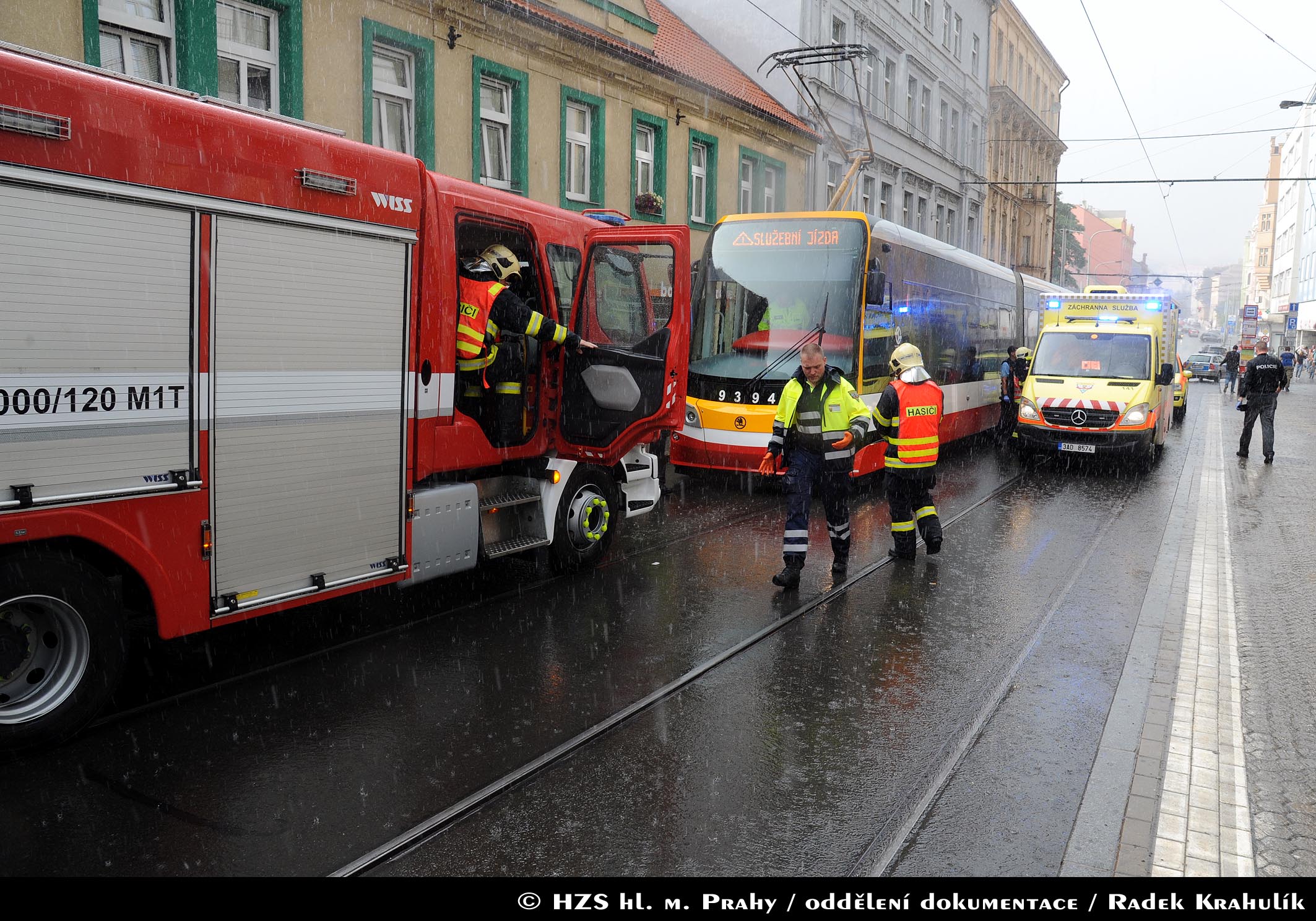 Ve středečních podvečerních hodinách zasahovaly všechny složky za značně nevlídného počasí na pražské Palmovce, kde došlo ke střetu chodce s tramvají.