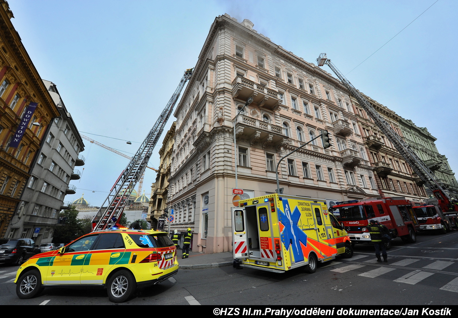 Jednotky z centrální a krčské stanice zasahovaly v 13:47 hodin dne 19.09.2017 v ulici Legerova v Praze 2 u požáru sauny v činžovním domě.