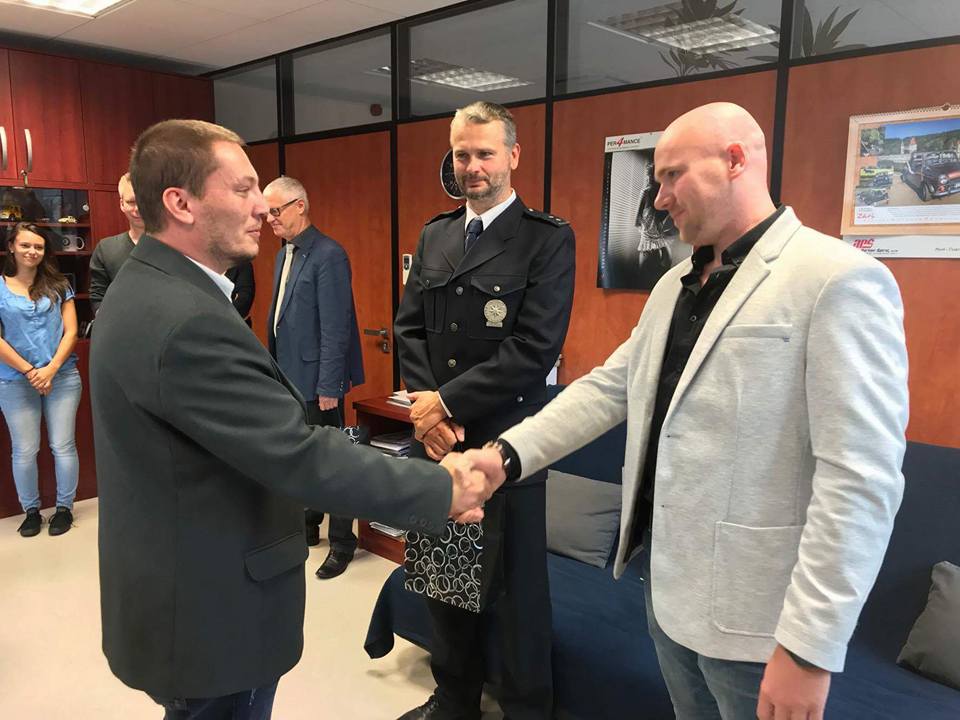 V úterý dopoledne přišel poděkovat záchranářům a policistům z dálničního oddělení PČR tatínek miminka, které bylo v sobotu transportováno do Motola. Všichni zúčastnění z toho mají radost a miminku přejí brzké uzdravení.