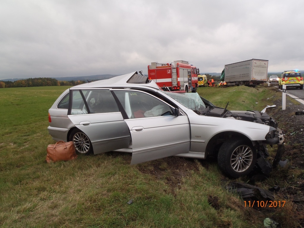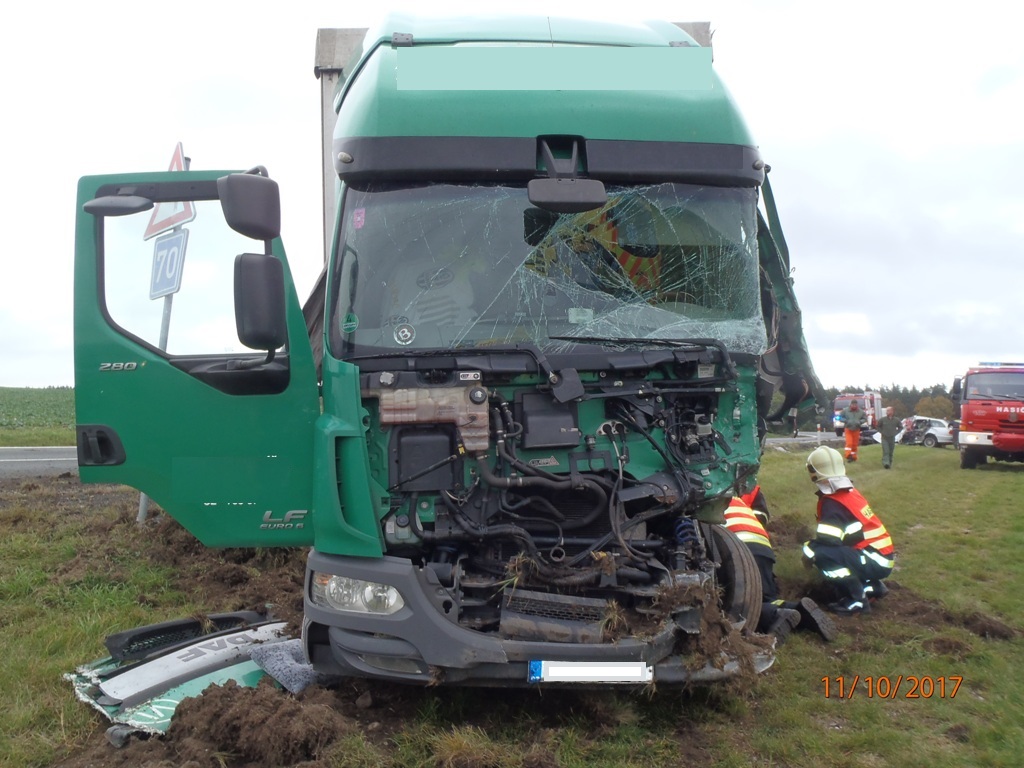 Ve středu 11. října 2017 ve čtvrt na jedenáct dopoledne vyslalo operační středisko jednotky HZS Plasy a SDH Kralovice k vážné dopravní nehodě osobního auta s kamionem, která se stala poblíž odbočky na Žebnice. Obě vozidla skončila asi 200 metrů za křižovatkou na louce.
