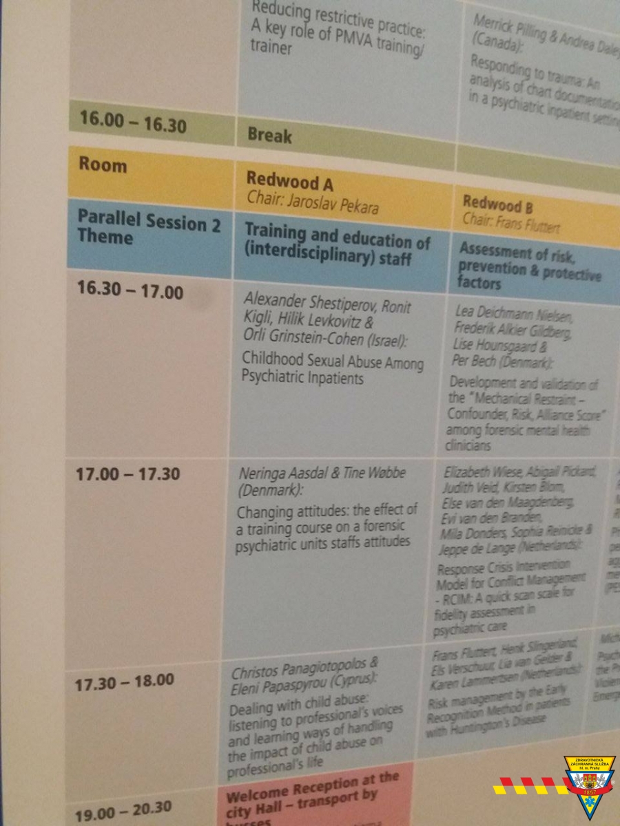 Ve dnech 25. – 28. října 2017 se v irském Dublinu konal již 10. ročník Mezinárodního kongresu o prevenci násilí v psychiatrii a zdravotních službách. Kongres byl pořádán skupinou expertů v dané problematice – European Violence in Psychiatry Research Group.