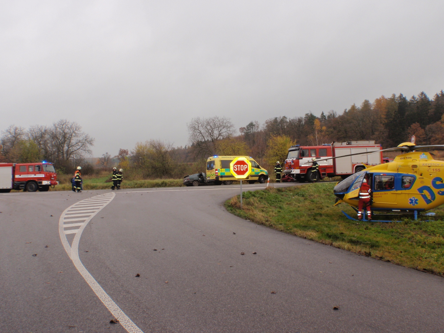 Vážná dopravní nehoda na Jičínsku, těžce zraněného řidiče transportoval do nemocnice vrtulník
