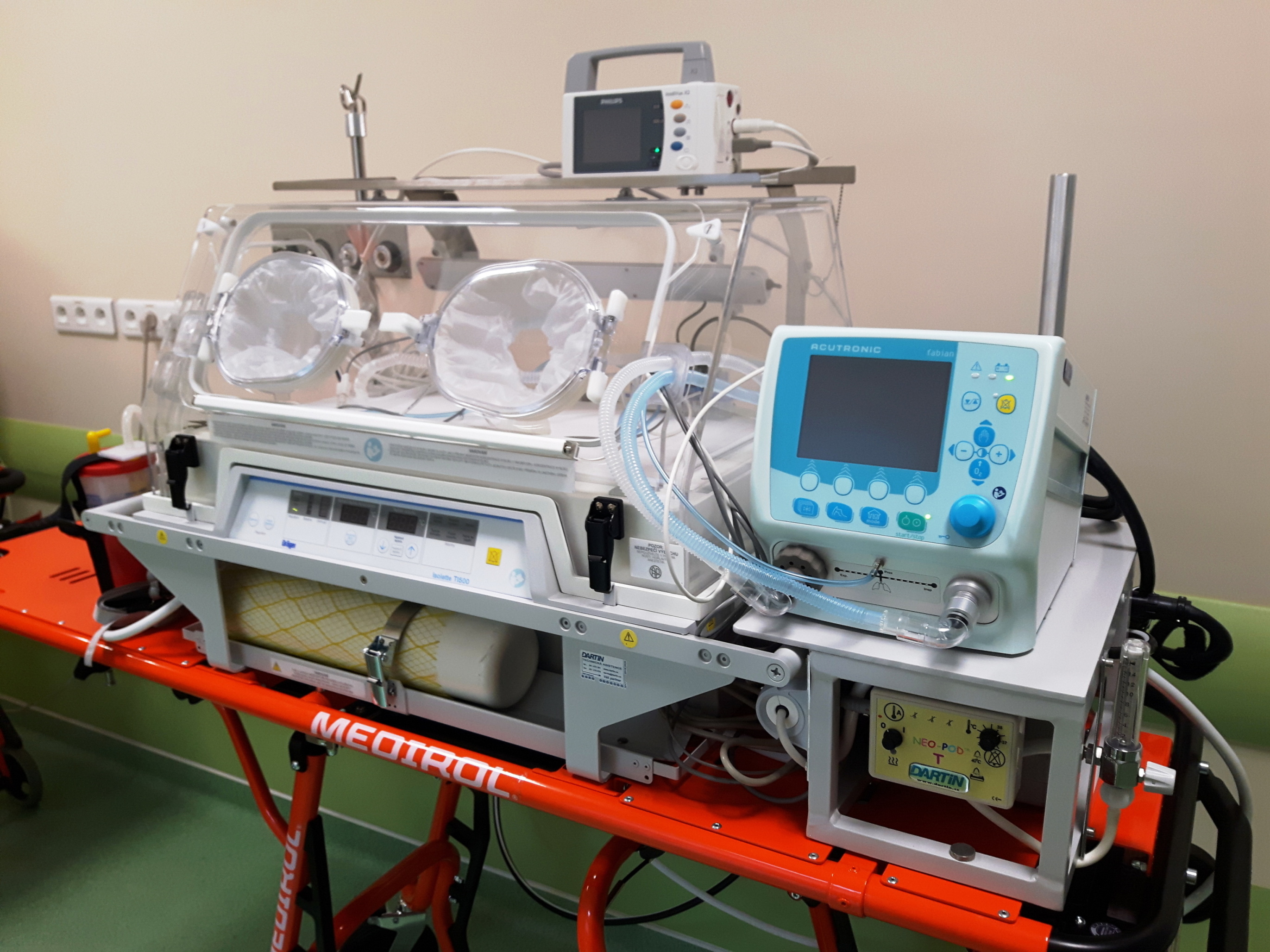 Z tohoto důvodu byl na základě specifikace zpracované společně s neonatologickým oddělením Nemocnice České Budějovice pořízen nový moderní transportní inkubátor, který splňuje všechny bezpečnostní a profesní požadavky na transport novorozence v 21 století.