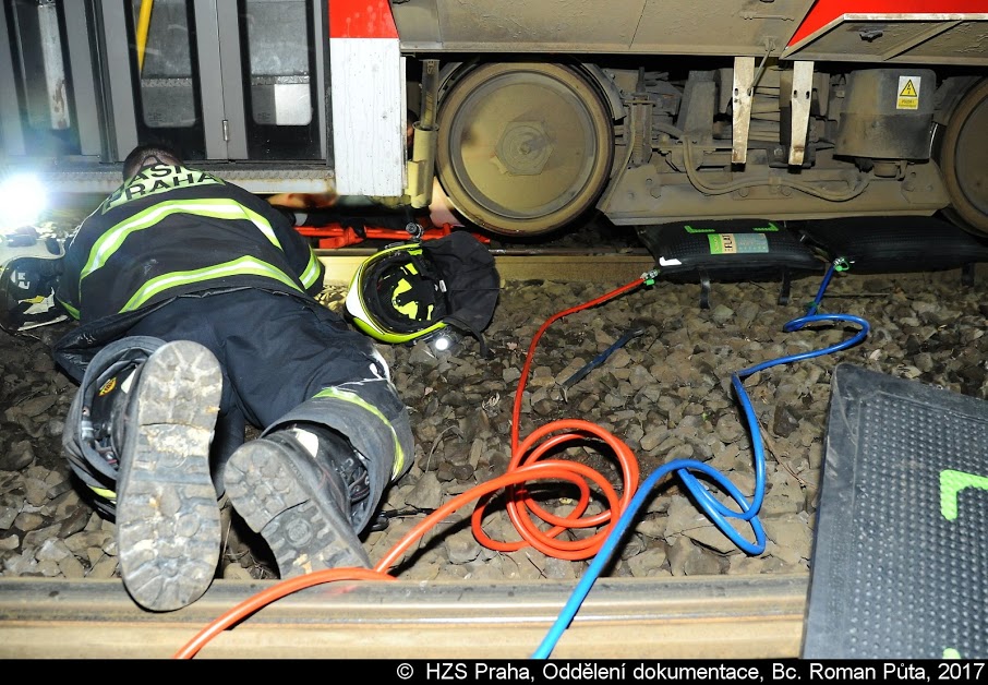 Hasiči odpojili pantograf a přizvedli soupravu pomocí pneumatických vaků. Osobu vyprostili za 15 minut po příjezdu na místo a předali do péče ZZS. Událost šetří PČR.