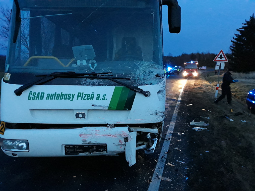Následkům nehody autobusu a osobního vozu na Rokycansku podlehla pětiletá holčička a řidič automobilu