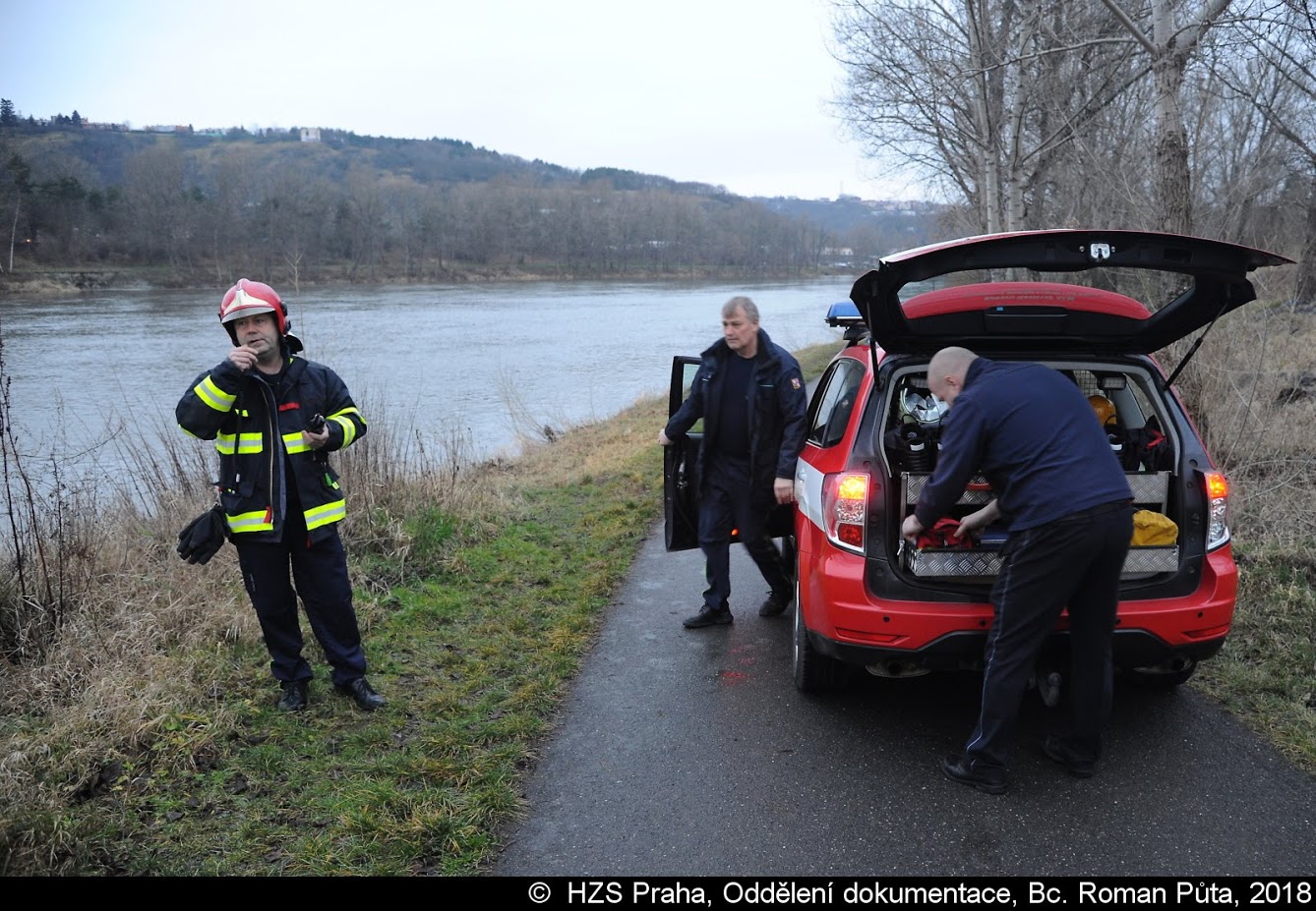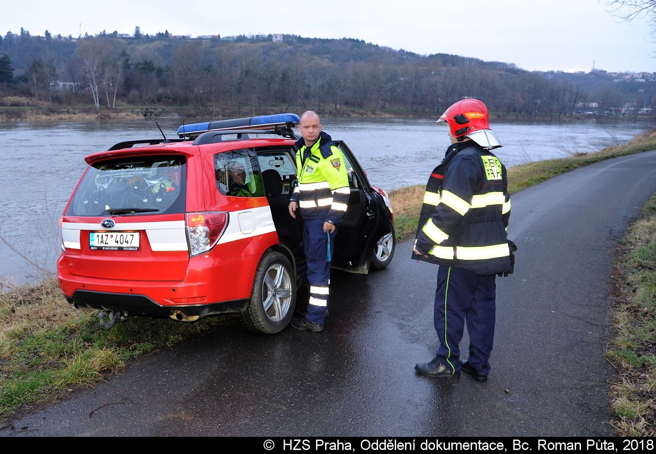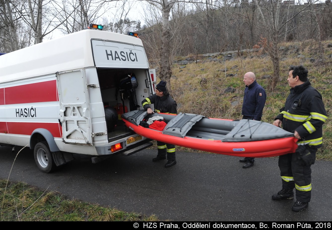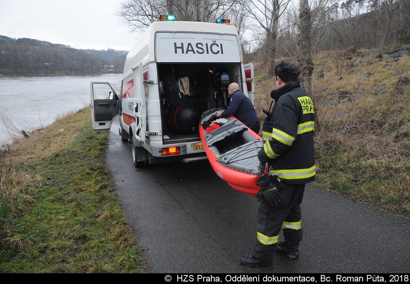 Jeden z vodáků se převrhl do Vltavy, kde ho unášel silný proud. Z vody nakonec muže zachránili policisté, kteří ho předali hasičům a ZZS.
