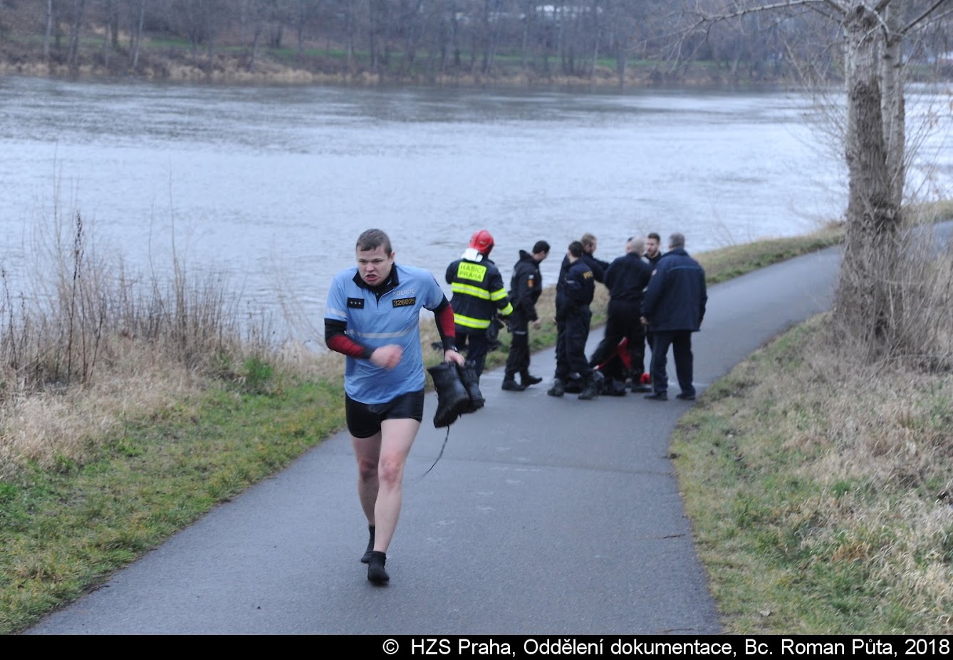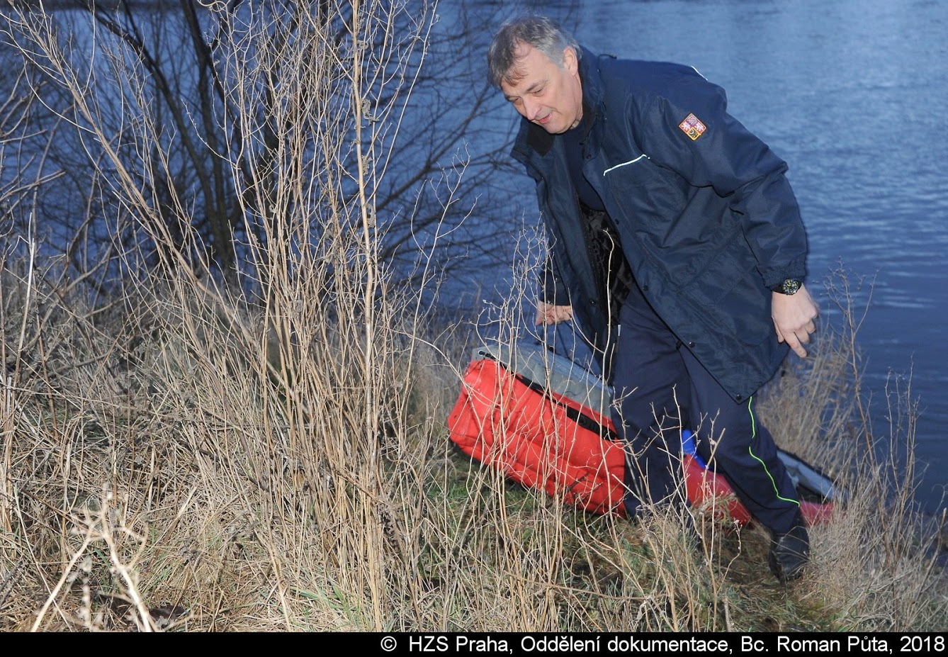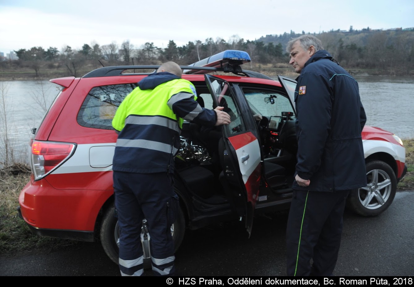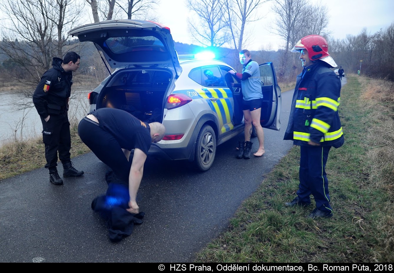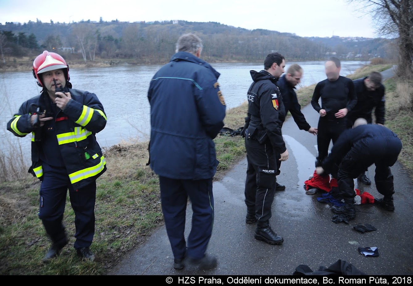 Jeden z vodáků se převrhl do Vltavy, kde ho unášel silný proud. Z vody nakonec muže zachránili policisté, kteří ho předali hasičům a ZZS.