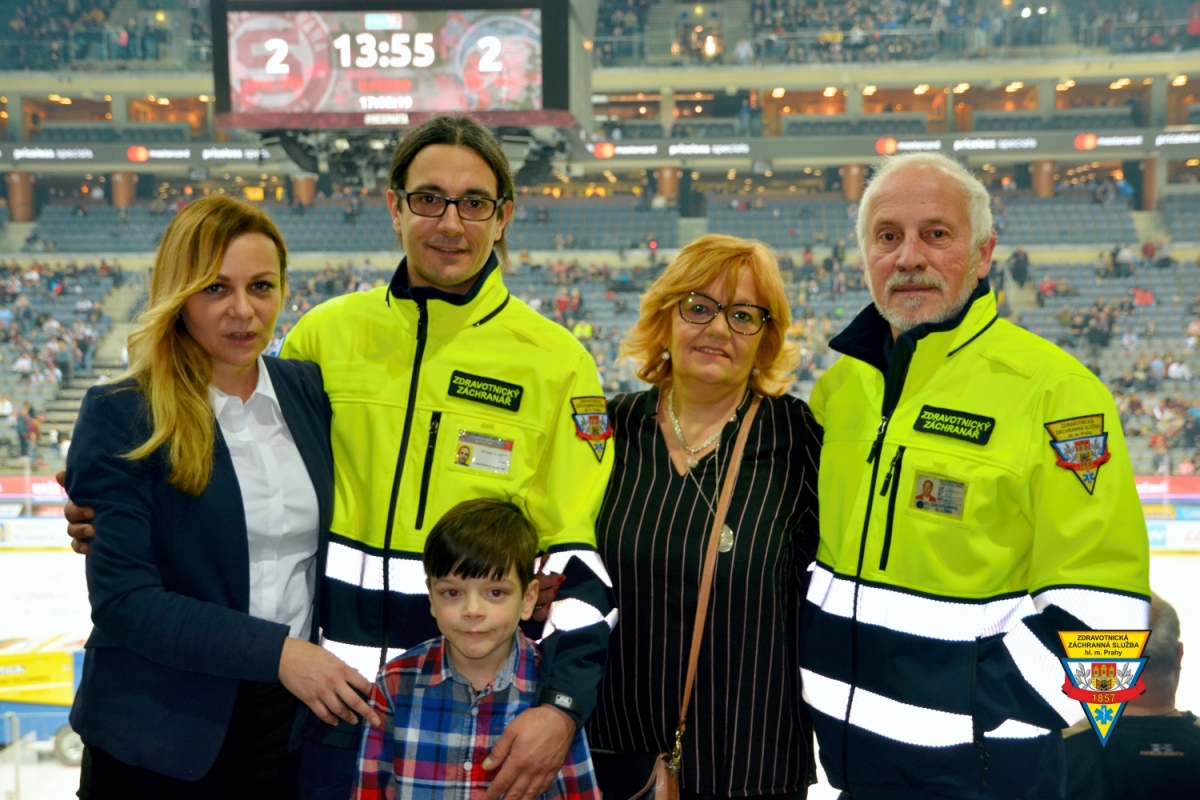 Pražskou záchranku tak při slavnostním ceremoniálu na ledě reprezentovala rodina Matuštíkových. Otec Jiří a syn Petr dohromady jako zdravotničtí záchranáři odsloužili přes čtyři desítky let. Když odhadovali, kolika lidem za tu dobu pomohli, dostali se až k číslům přesahujícím 40 000 pacientů – takový počet by hlediště arény bohatě zaplnil víc než dvakrát. Zatímco Jiří si už několik let užívá zasloužený důchod, Petr je stále aktivní záchranář.