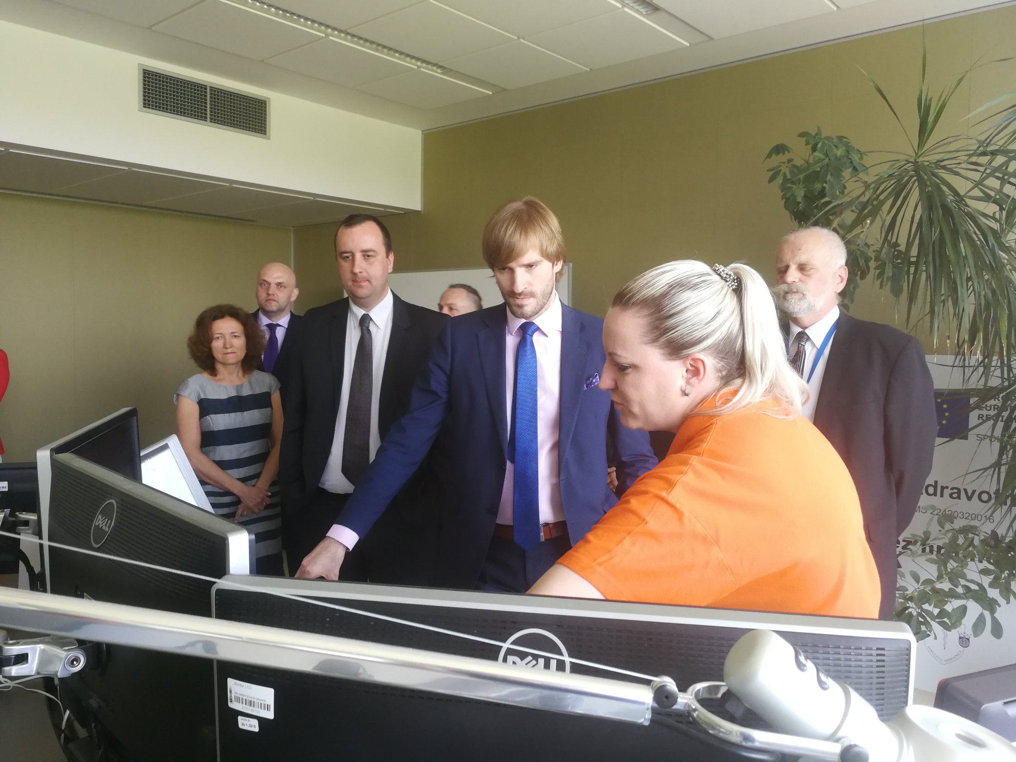 Ministr zdravotnictví navštívil také operační středisko, kde ho vedoucí operátorka seznámila s operačním řízením v rámci Jihomoravského kraje a předvedla mu využití aplikace Záchranka u pacienta v terénu.