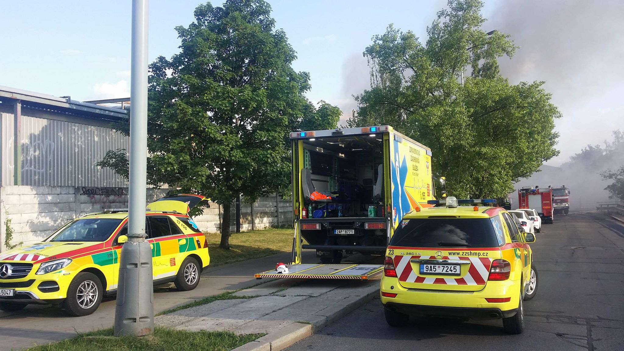 ěhem hasebních prací byla na místo povolána také ZZS HMP, a to pro případ, že by se zranil nějaký ze zasahujícíh hasičů. V průběhu události se tak dostavila velkokapacitní sanitka Atego, dále vedoucí zdravotnické složky, dříve označovaný jako inspektor provozu, vyjela i repatriační sanitka, nazývaná „Bydlík“, ta záchranářům poskytla potřebné sociální zázemí při tomto déle trvajícím zásahu. Ošetřen musel být jeden z hasičů, který byl následně transportován do nemocnice. Jednalo se u něj o celkové vyčerpání. K požáru tak vyjel i lékař a posádka RZP.