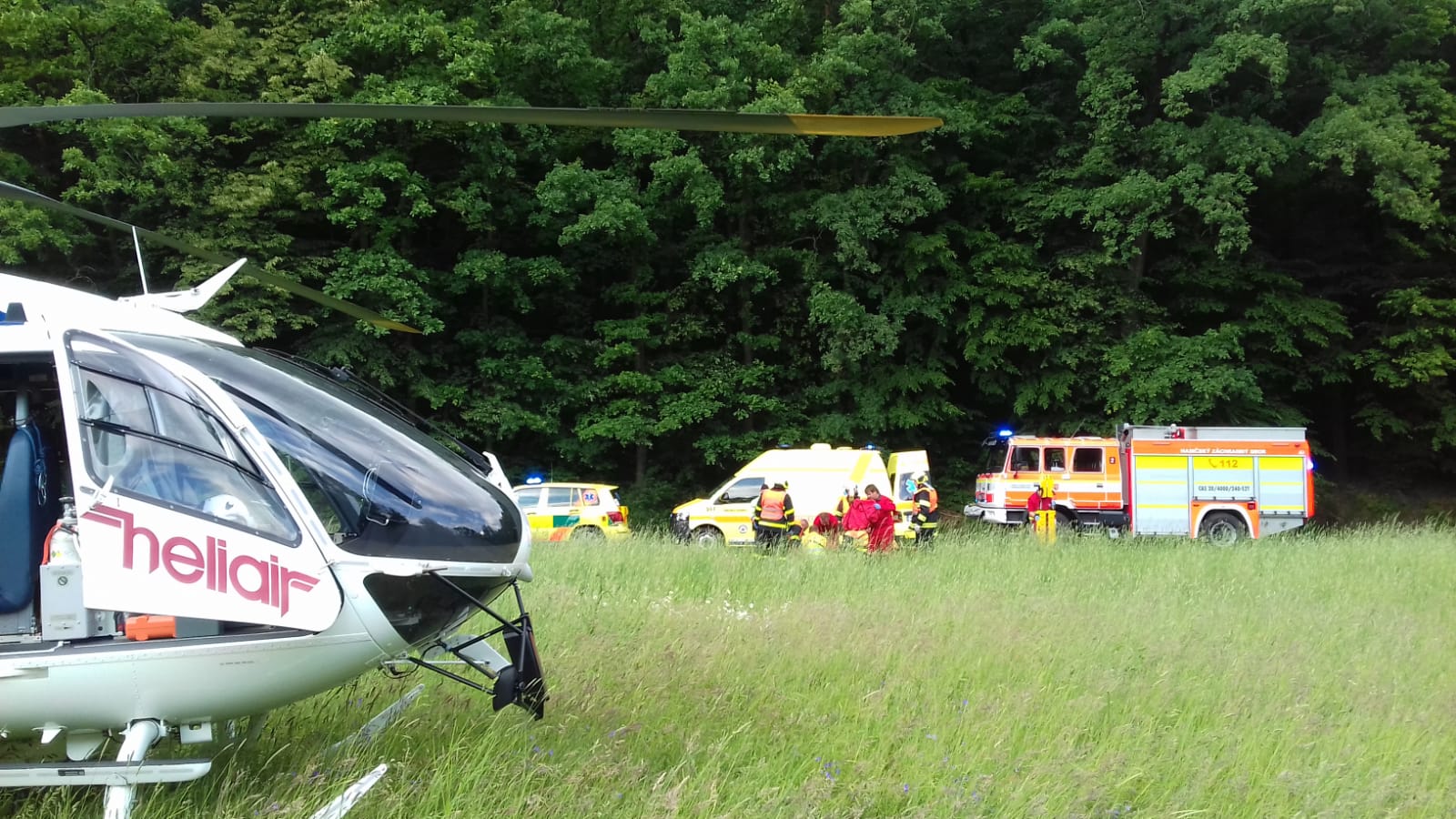 Nejprve operátoři přijali oznámení o pádu cyklistky na cyklostezce v Bartošovicích. Sedmadvacetiletá žena si při nehodě přivodila vážné poranění hlavy a horní končetiny. Pacientce byla poskytnuta přednemocniční neodkladná péče a poté ji vrtulník transportoval do Fakultní nemocnice v Ostravě.