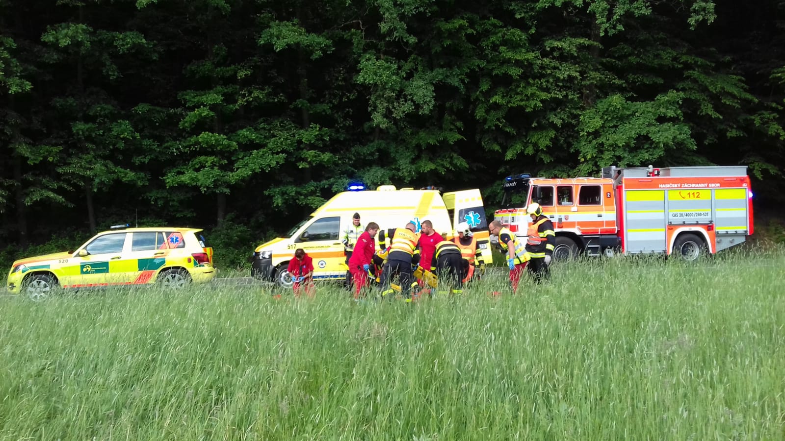 Na silnici mezi obcemi Jerlochovice a Vlkovice došlo okolo sedmnácté hodiny ke střetu motocyklisty s automobilem. Šestapadesátiletý motocyklista utrpěl vážná poranění horní a dolní končetiny. Kromě něj došlo ke zranění dvou cestujících v osobním vozidle – u šestašedesátileté ženy a čtrnáctiletého chlapce zjistili záchranáři lehká poranění. Motocyklistu do nemocnice v Ostravě přepravil vrtulník, další dva zraněné pak sanitní vozidlo do novojičínské nemocnice.