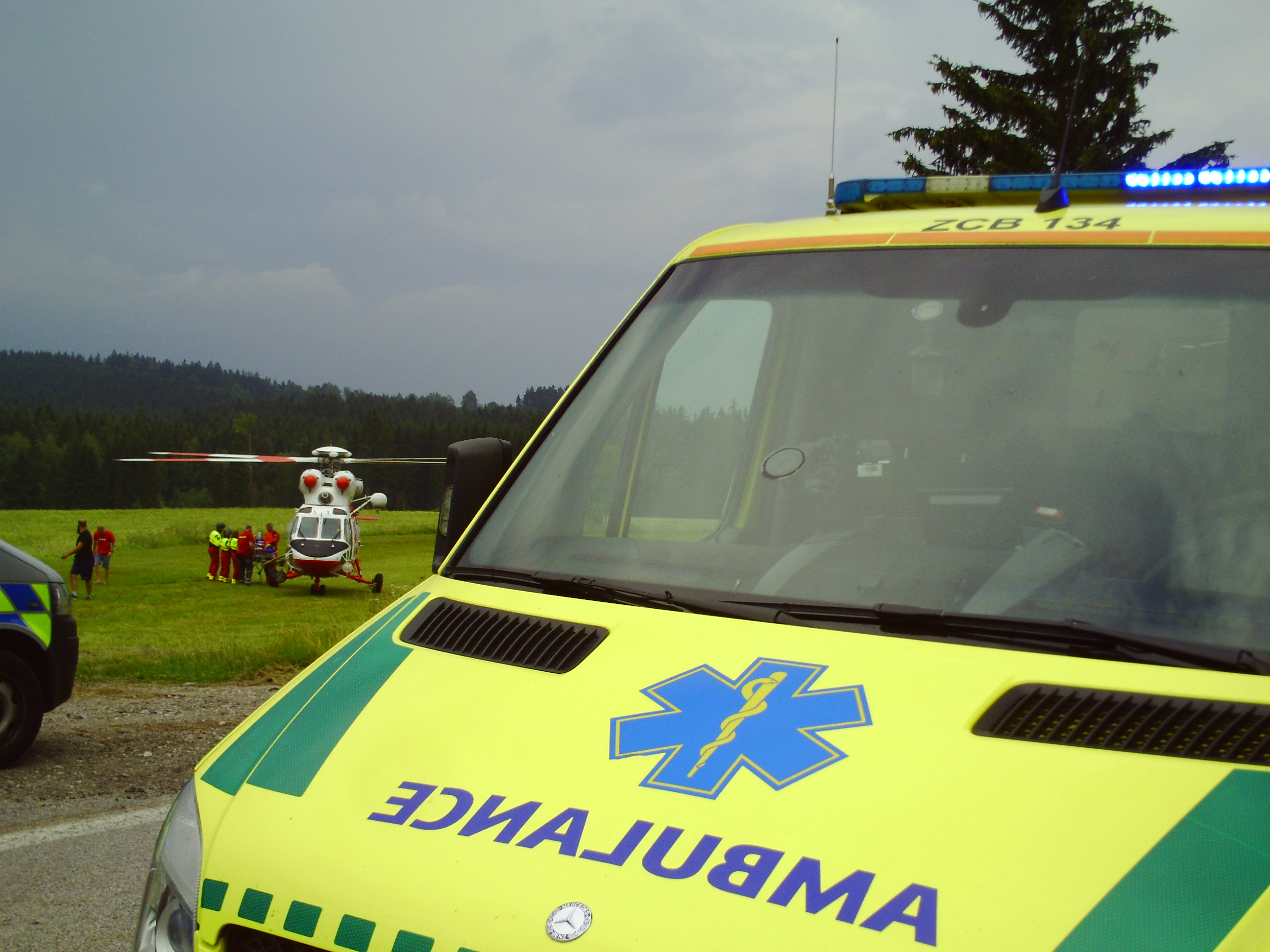 Pacient s otevřenou zlomeninou bérce byl letecky přepraven do nemocnice v Českých Budějovicích.