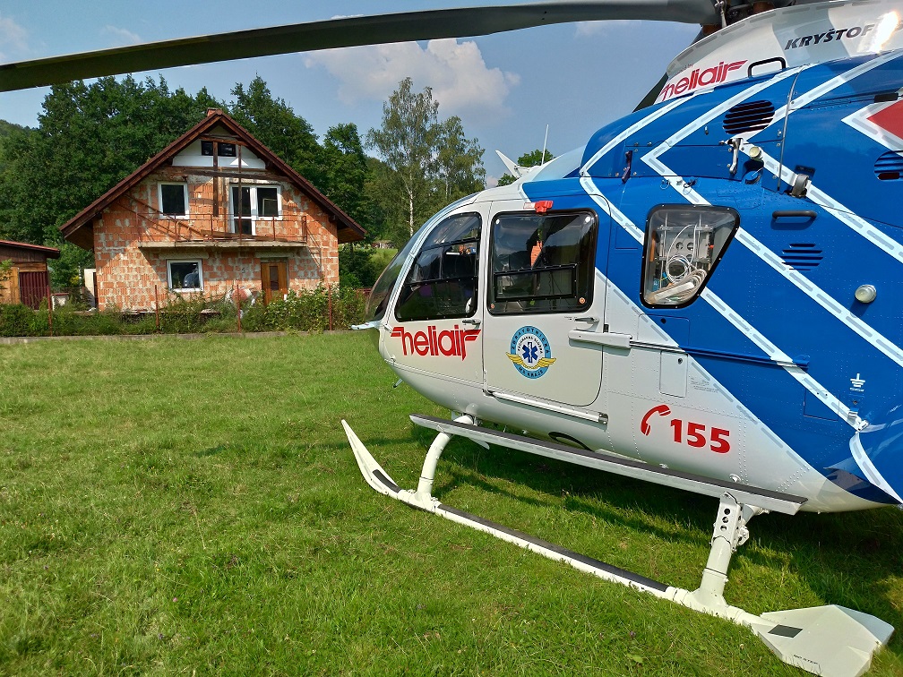 Osmasedmdesátiletý muž spadl z lešení ve výšce kolem čtyř metrů na levý bok a stěžoval si na bolest v oblasti hrudníku a levé dolní končetiny. Po celou dobu se záchranáři komunikoval. Tito v rámci přednemocniční péče u zraněného provedli znehybnění pomocí krčního límce a vakuové matrace. Ošetřili mu povrchní poranění v oblasti hlavy a zahájili podávání léků. Leteckou cestou jej s podezřením na zlomeniny žeber přepravili k dalšímu ošetření do fakultní nemocnice v Ostravě na oddělení urgentního příjmu.