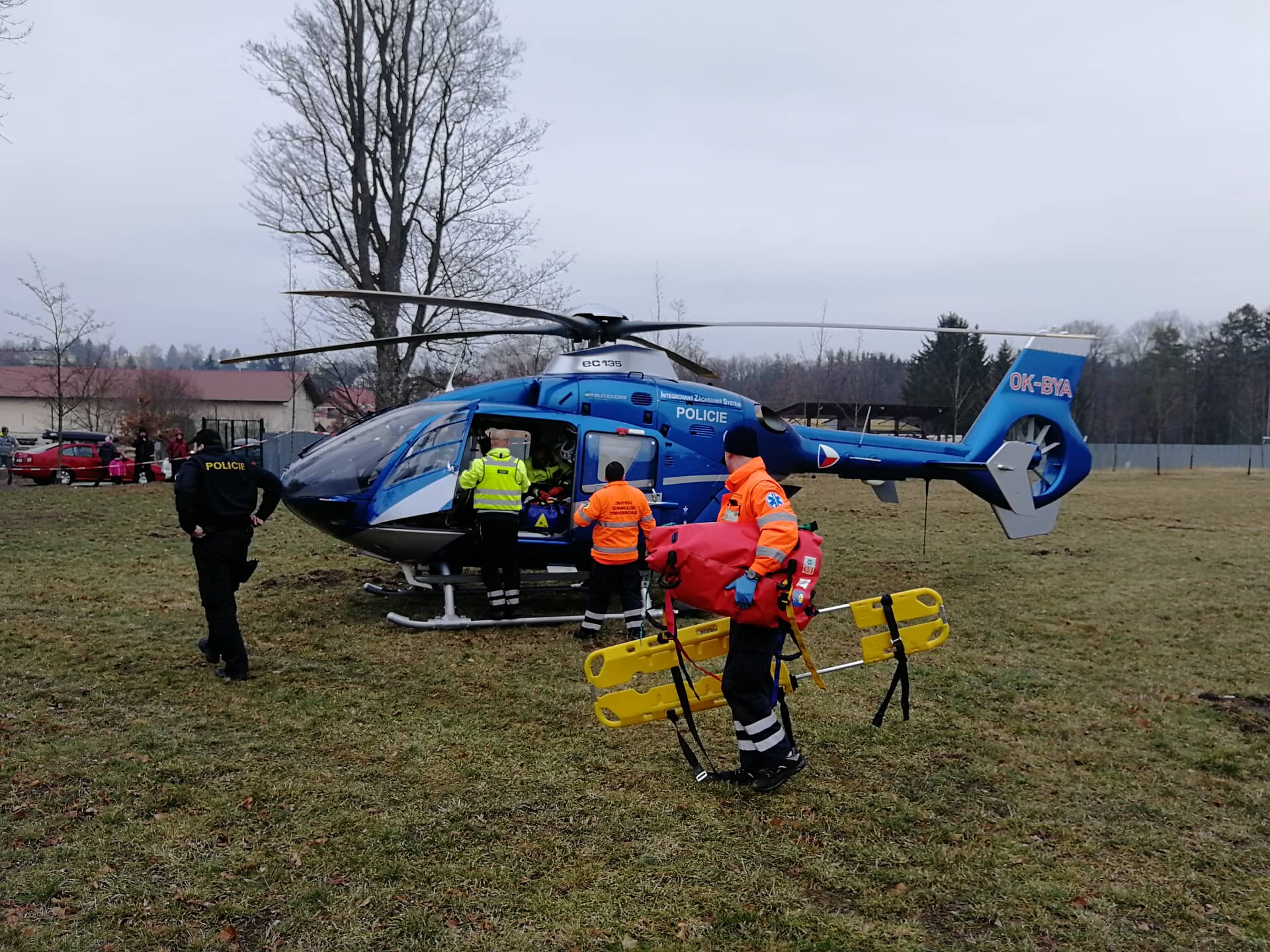 Po příjezdu záchranáři poskytli pacientce s poruchou vědomí a tržnou ránou na bradě nezbytnou péči. Poté byla zafixována proti pohybu a připravena na transport do krčské nemocnice.