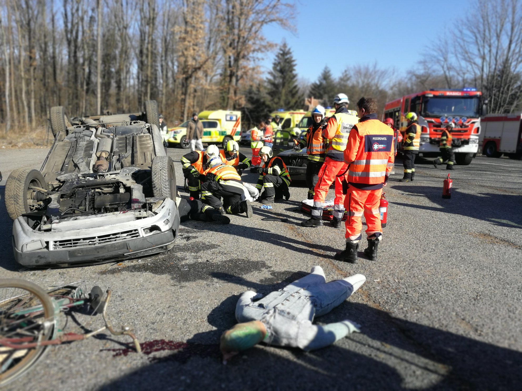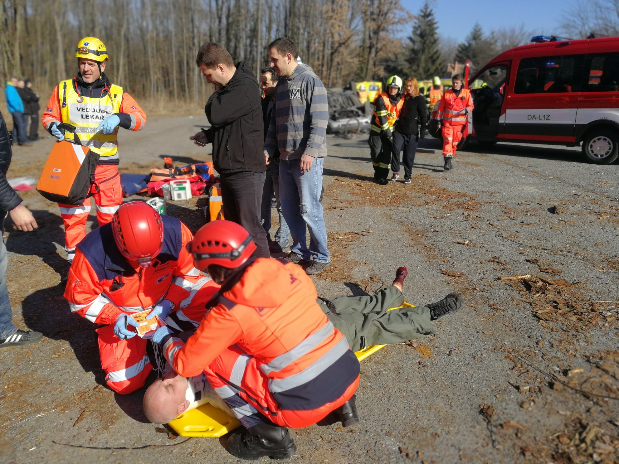 Jeden mrtvý a 15 zraněných, taková byla bilance čtvrteční kolize dvou osobních vozů, dodávky a cyklisty na Břeclavsku, naštěstí vše bylo „jen jako“. Jednalo se totiž o cvičení mimořádné události s hromadným postižením osob. „Mimořádné události nejsou v reálu tak časté, právě proto se na ně musíme pravidelně připravovat, musíme předvídat všechny situace, které mohou nastat, nic nás nesmí zaskočit,“ vysvětluje Sylva Nováková z oddělení krizové připravenosti jihomoravské záchranky.