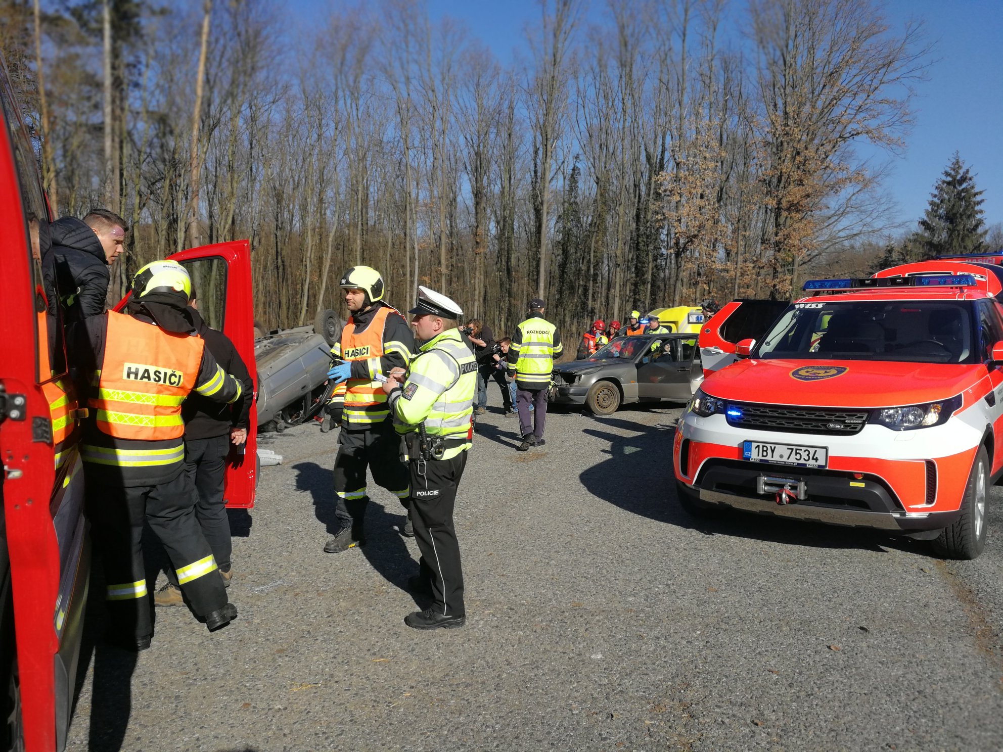 Jeden mrtvý a 15 zraněných, taková je bilance kolize dvou osobních vozů, dodávky a cyklisty na Břeclavsku, naštěstí vše bylo „jen jako“
