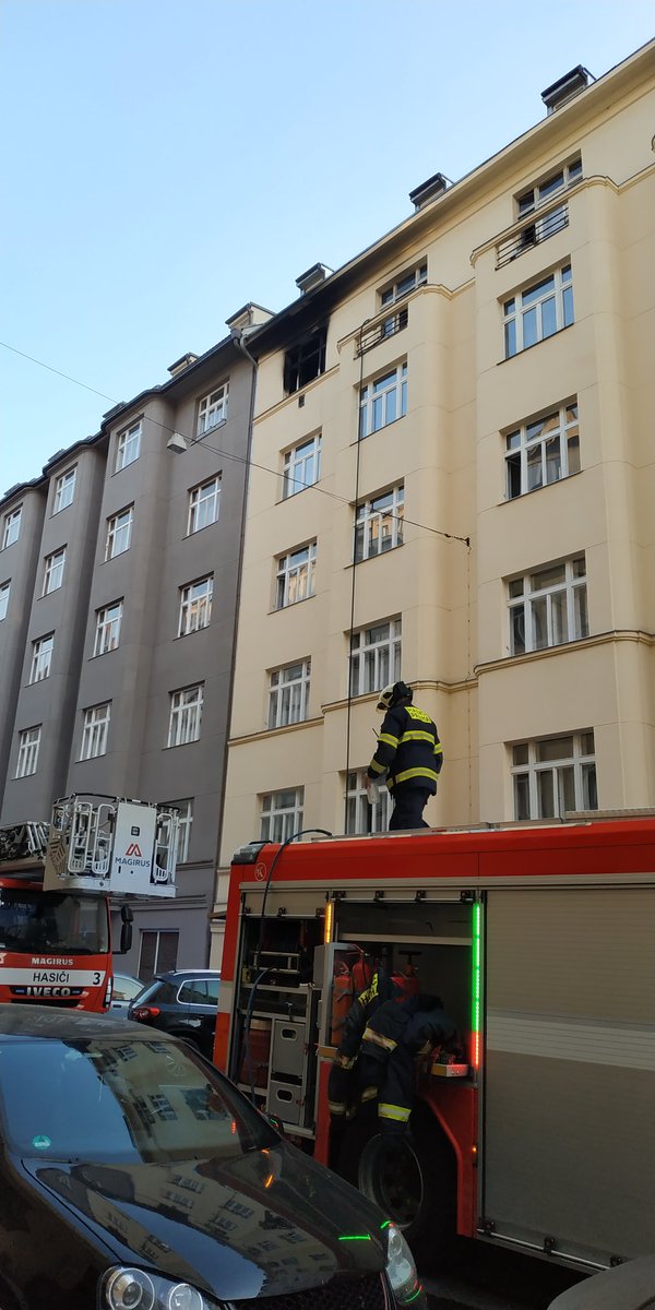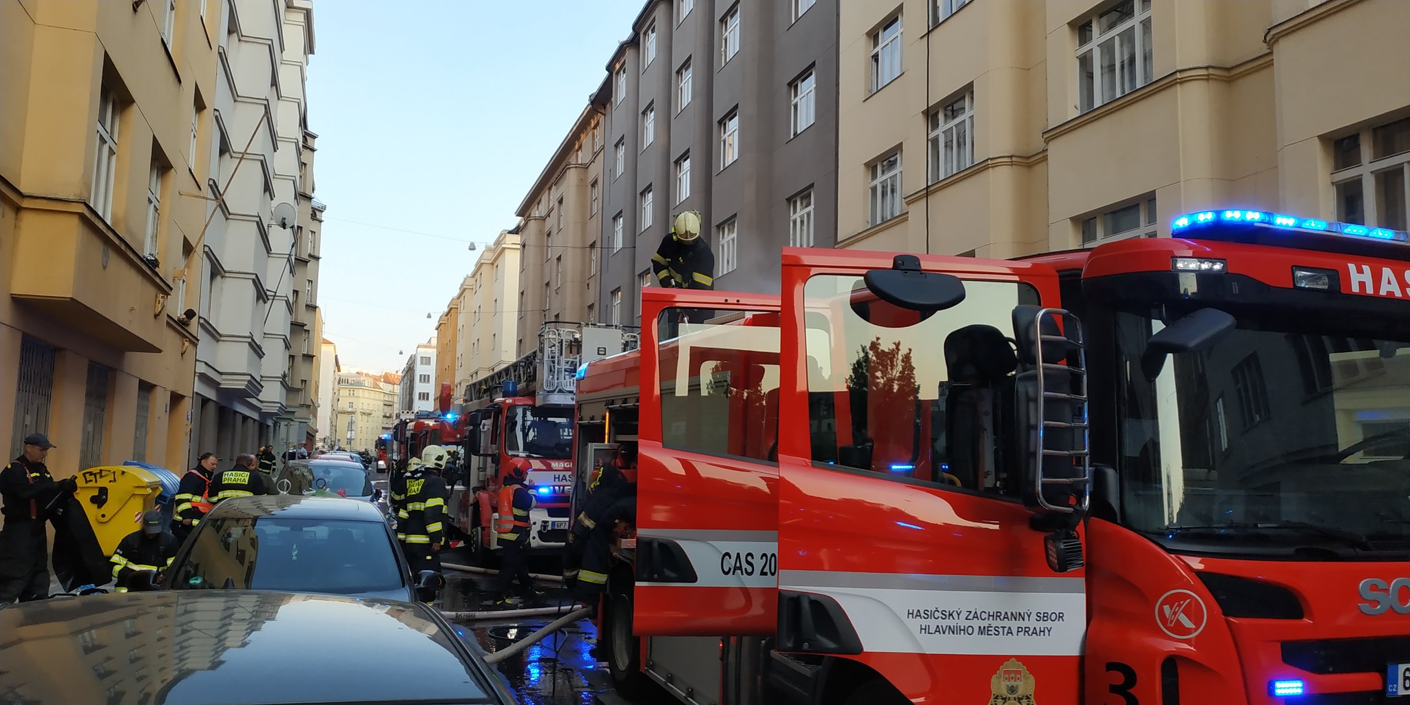 Při likvidaci požáru bytu v pražských Holešovicích byli popáleni tři hasiči, záchranka vyhlásila traumaplán