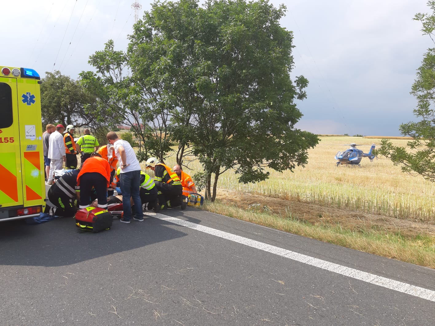 V pátek 12. července dvacet minut před 16. hodinou byli středočeští hasiči od zdravotnické záchranné služby vyžádáni k dopravní nehodě osobního automobilu a motocyklu na silnici první třídy číslo 12 v katastru obce Přistoupim na Kolínsku. Zdravotnická záchranná služba na místo povolala i vrtulník letecké záchranné služby.