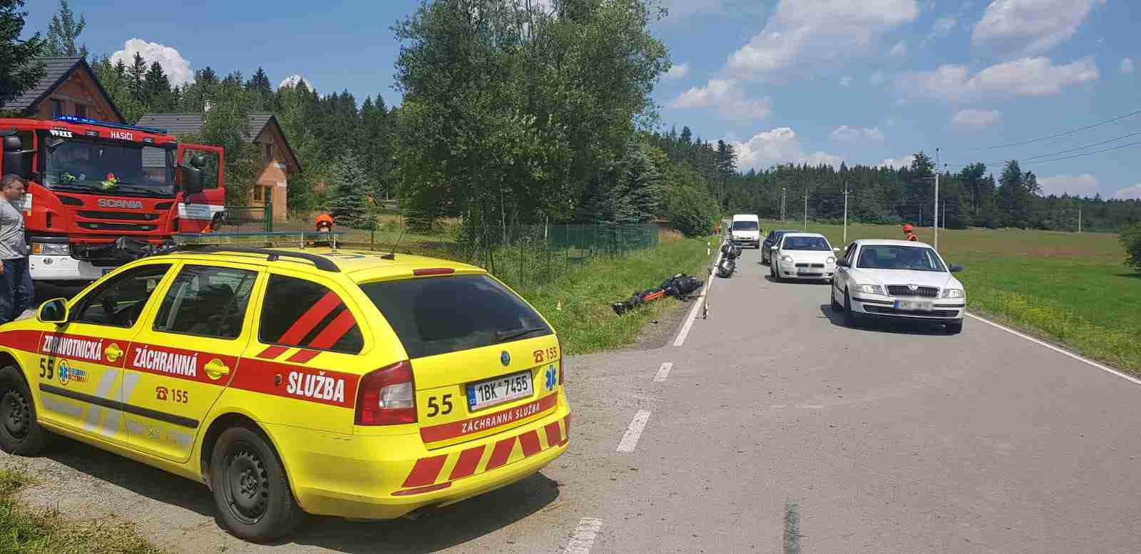 Pacient byl při vědomí, pádem z motorky si však způsobil zranění v obličejové části hlavy, dolní končetiny a břicha. Naše posádky ho ošetřily a zaléčily a vrtulník ho transportoval do traumacentra FN v Bohunicích.