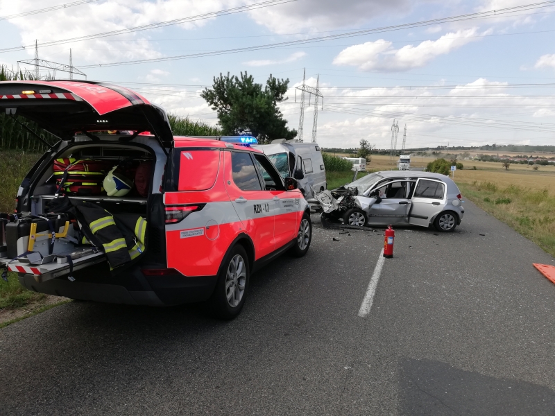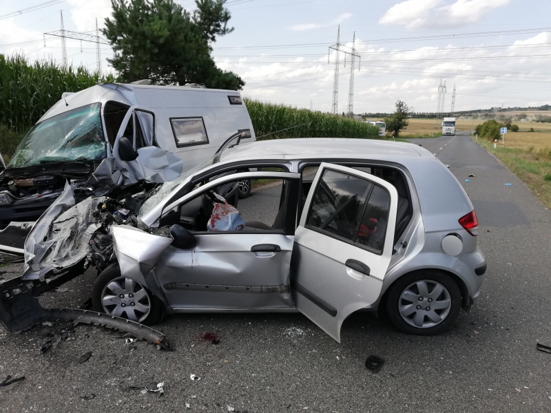 Dva zranění řidiči zůstali po střetu osobního auta s dodávkou mezi Újezdem u Brna a Žatčany na Brněnsku zaklíněni ve svých vozech. K nehodě došlo 1. 8. pár minut před 16. hodinou.