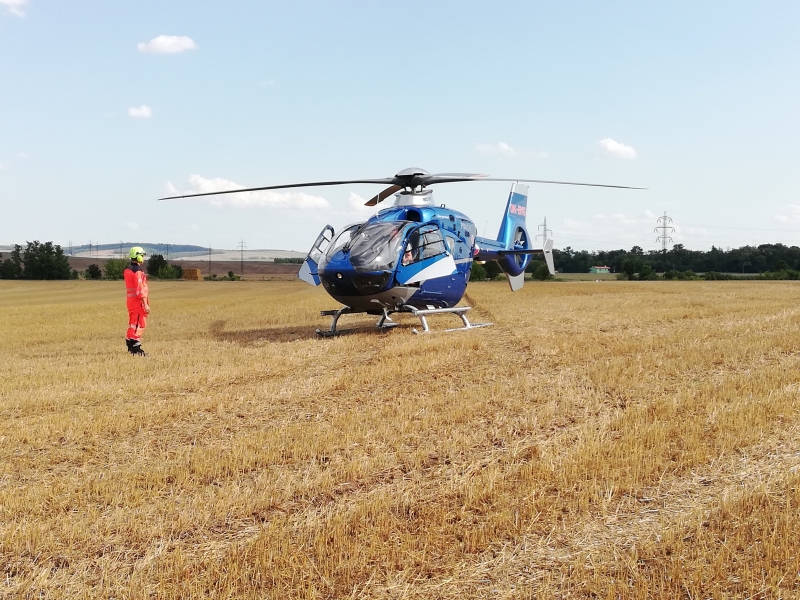 U Žatčan se střetlo auto s dodávkou, na místě zasahoval i vrtulník