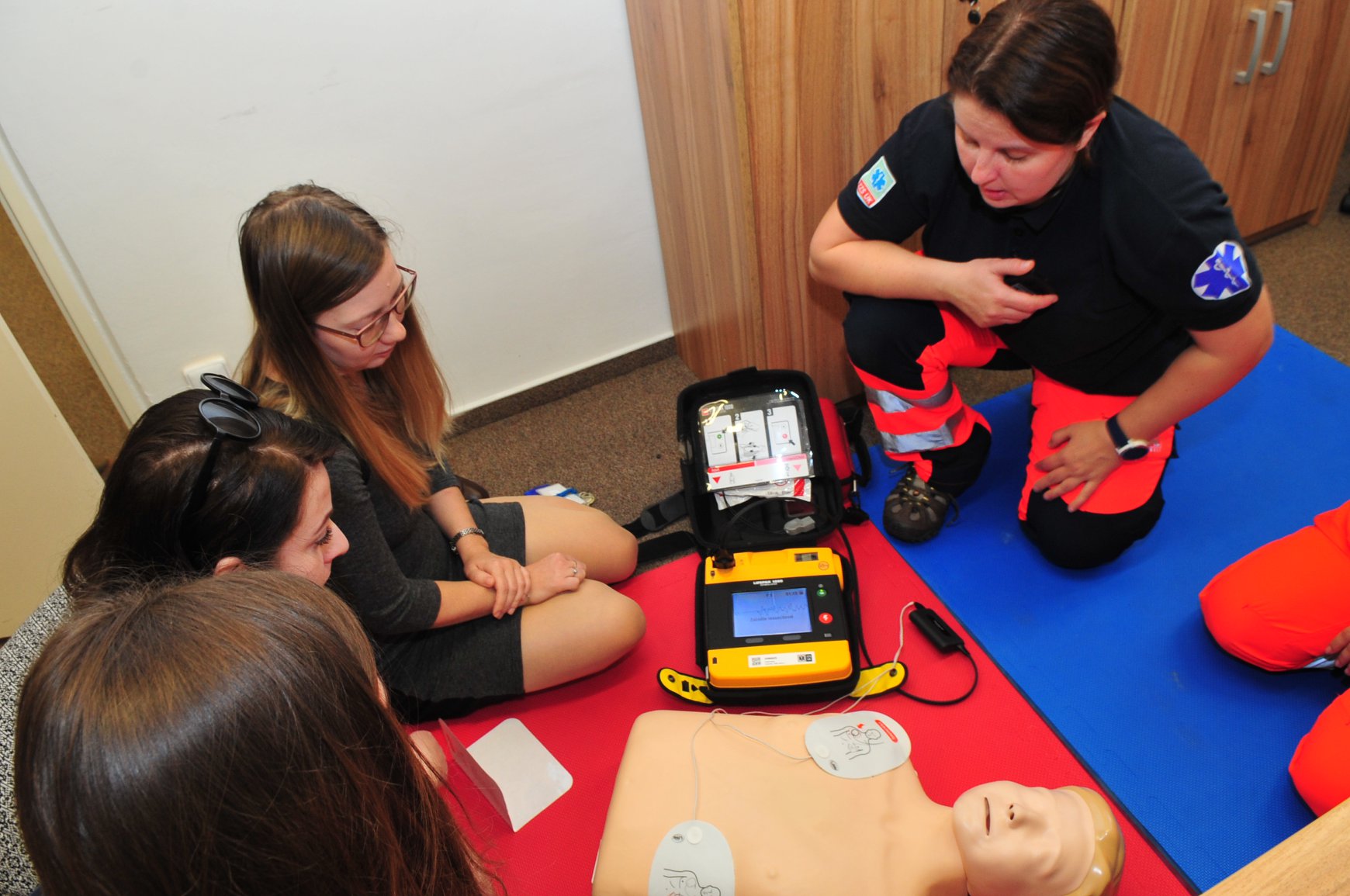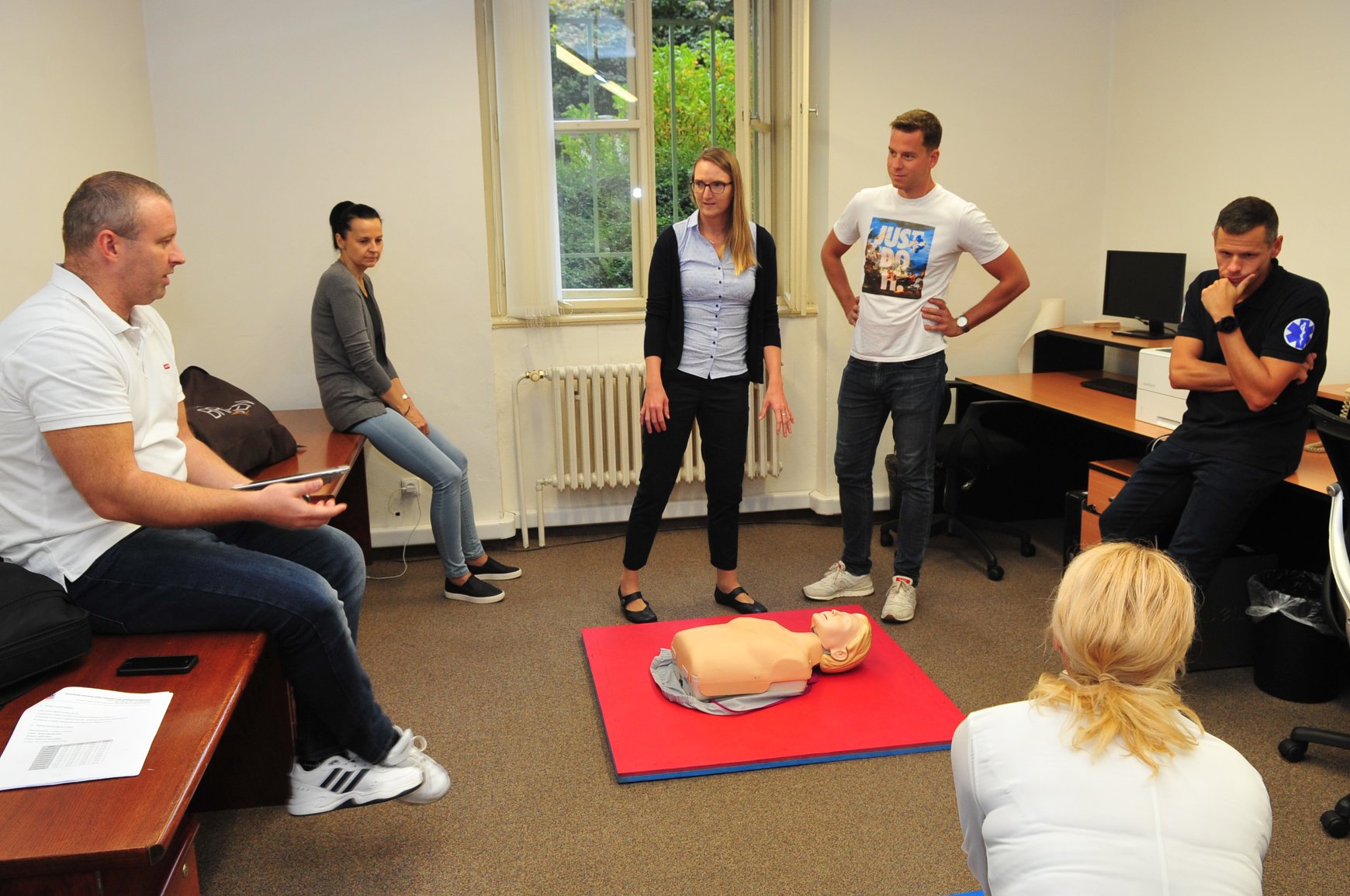 V rámci Týdne urgentní medicíny jsme pro naše zaměstnance uspořádali několik prakticky zaměřených workshopů a komentované prohlídky výjezdových vozidel zdravotnických záchranářů. Zájemci si tak mohli zopakovat nácvik první pomoci při akutních život ohrožujících stavech, nácvik nepřímé srdeční masáže nebo vyzkoušet nácvik neodkladné resuscitace s použitím automatizovaného externího defibrilátoru.