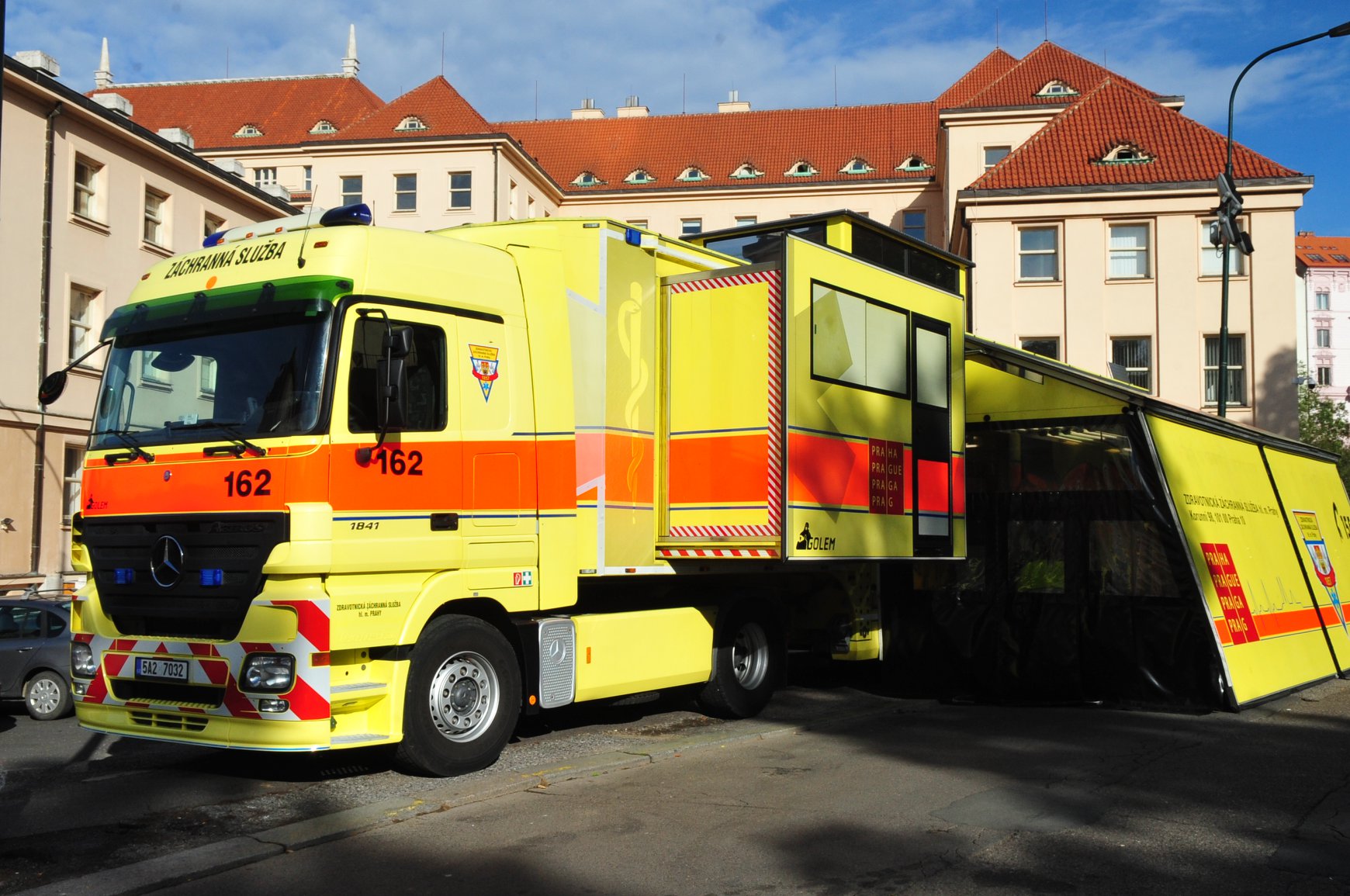 Kromě několika různých sanitek bylo dispozici také speciální vozidlo Golem, které zasahuje při hromadných neštěstích, a v Zítkových sadech, které slouží jako přistávací plocha pro Všeobecnou fakultní nemocnici v Praze, dosedl vrtulník pražské letecké záchranky.
