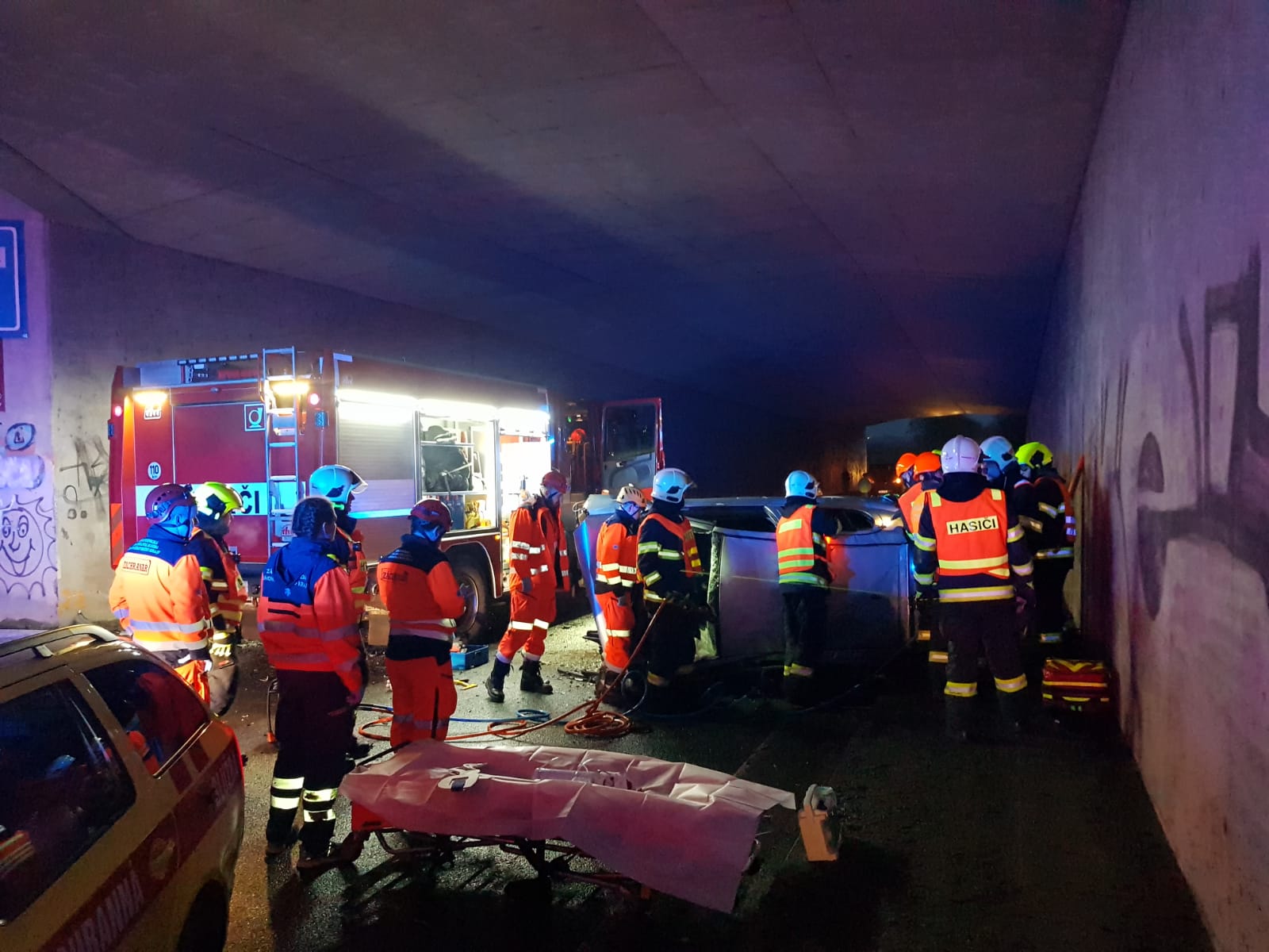 Na místo se ihned sjely záchranné složky. Hasiči pacienta vyprostili, náš lékař však mohl jen konstatovat jeho smrt. Zranění, která náraz vozidla způsobil, byla neslučitelná se životem.