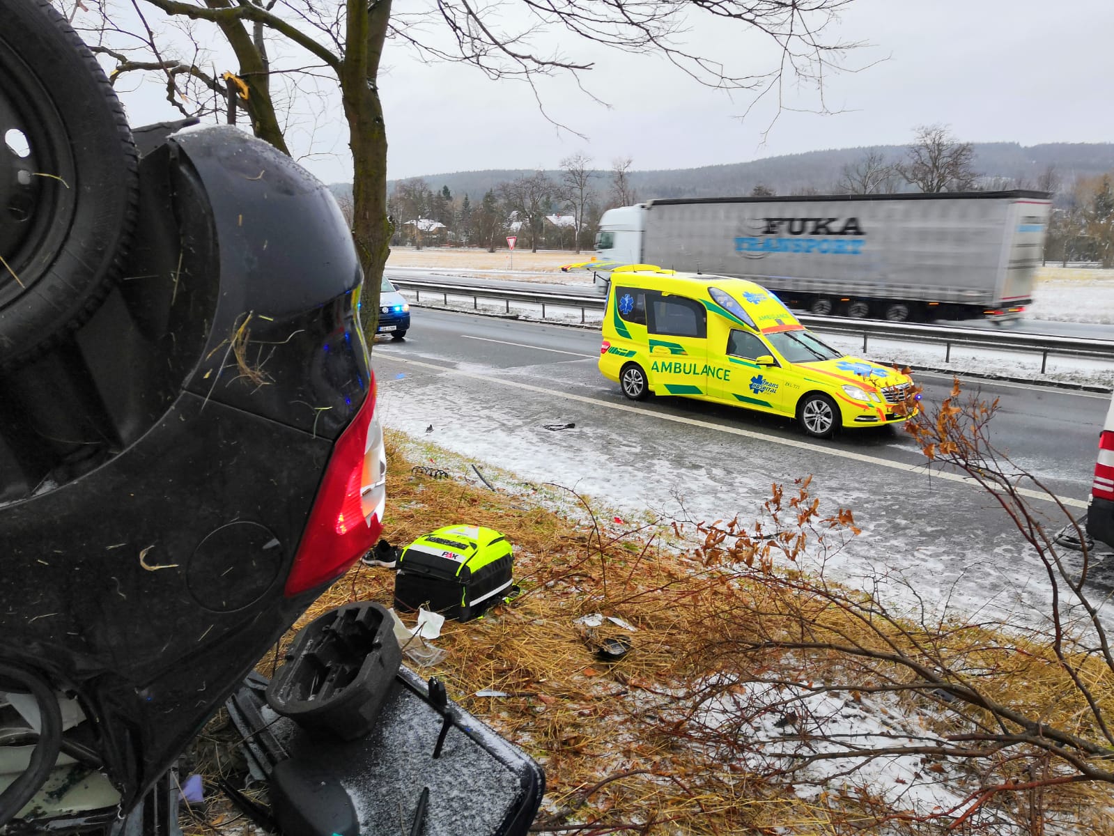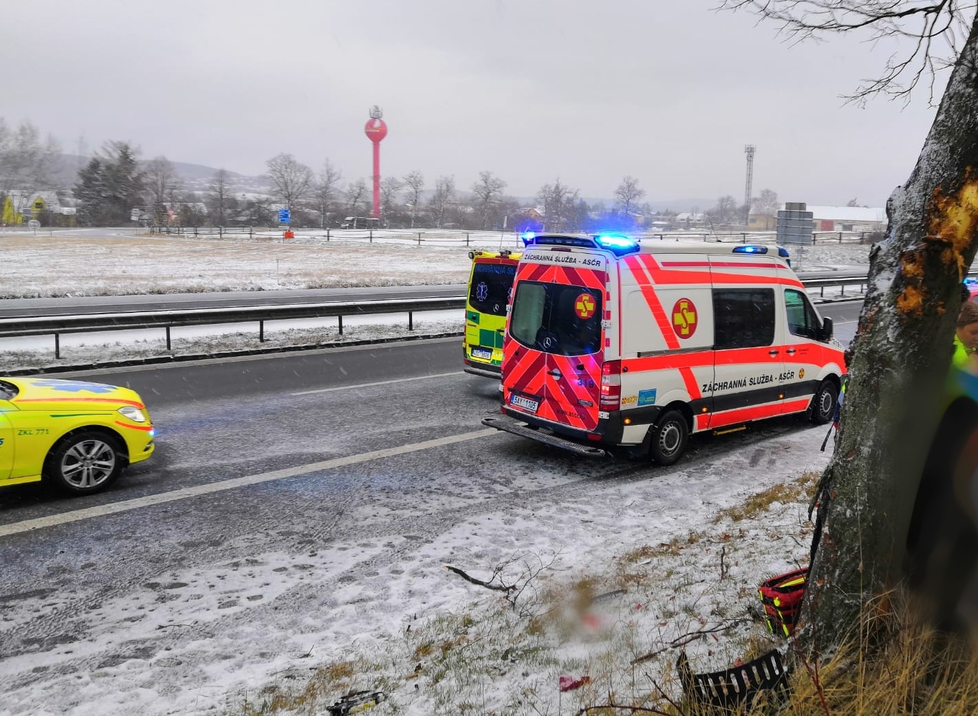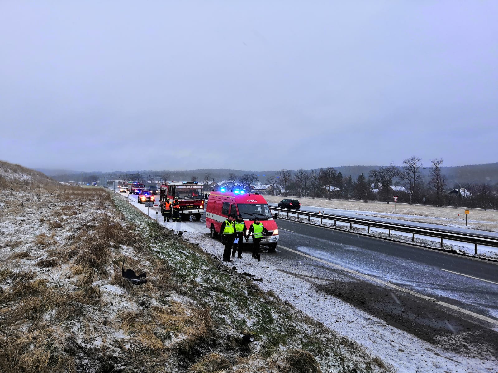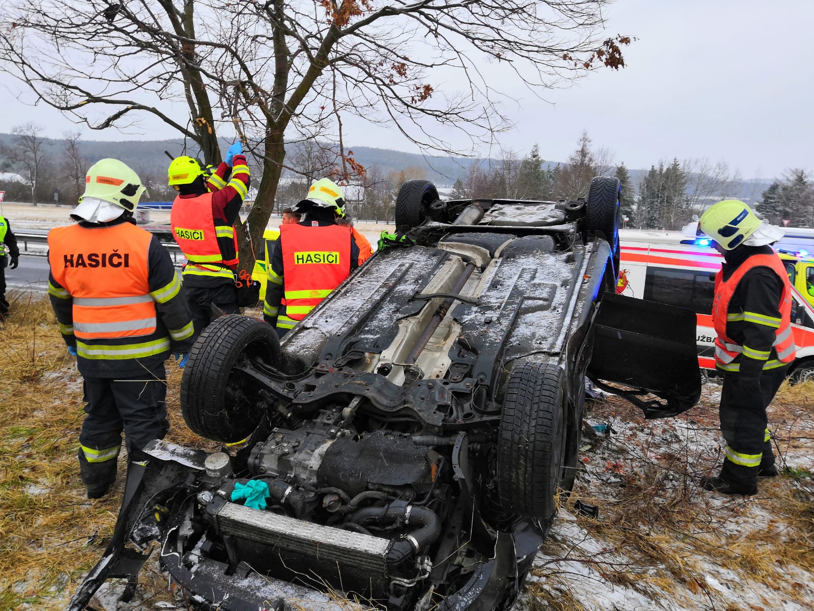 U Řitky vyjel z dálnice osobní automobil a narazil do stromu, při nehodě zahynula mladá žena, tři další lidé utrpěli zranění