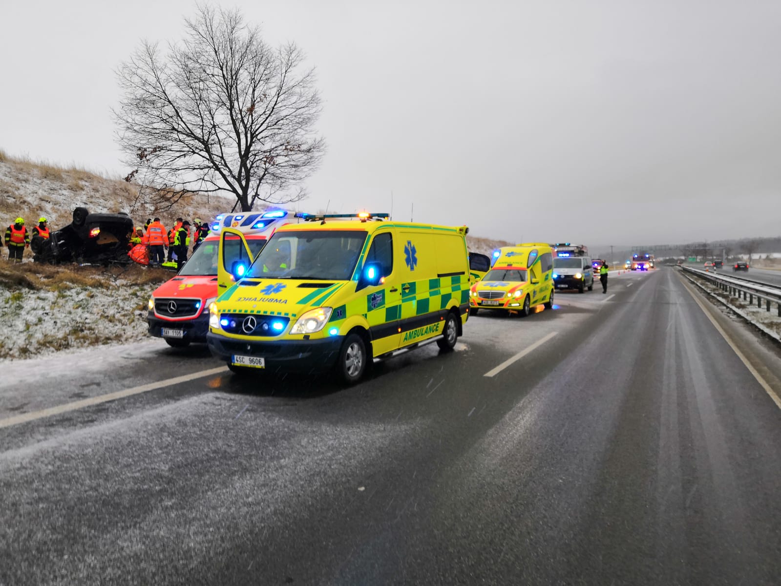 Na místo byly okamžitě povolány záchranné složky –  profesionální hasiči ze Řevnic, dobrovolní z Mníšku pod Brdy, policisté a celkem čtyři posádky záchranářů/dvě ASČR, dvě Trans Hospital Plus.