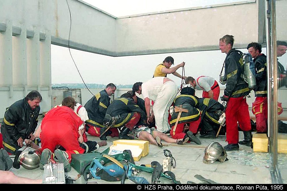 Jakmile to bylo možné, vyrazil hasič okenní sklo a vzduch udělal všem lépe. Pak se dočkali evakuační skupiny, která je vyvedla do bezpečí. O tomto profesionálním přístupu pražského hasiče psali zachránění v děkovných dopisech, zaslaných tu presidentu republiky, tu prostřednictvím velvyslance ČR nebo přímo řediteli HZS hl.m.Prahy. Byl to příslušník Václav Syblík – stanice Smíchov – směna C.