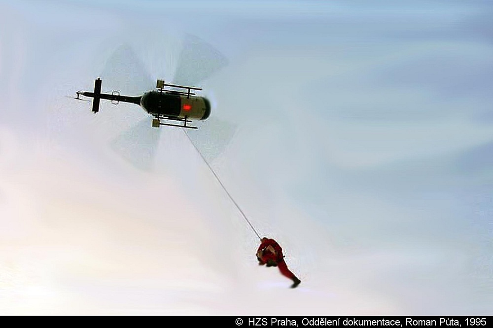 Na pomoc jsou v 18,41 přivolány vrtulníky letky ministerstva vnitra a Záchranné služby. Pomoc ze vzduch přiletěla už v 19,02 a vrtulník MV je nasazen na záchranu se střechy. Tam jsou osoby, které hasiči našli v zakouřených chodbách a vynesli je několik pater na vzduch.