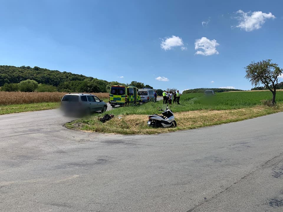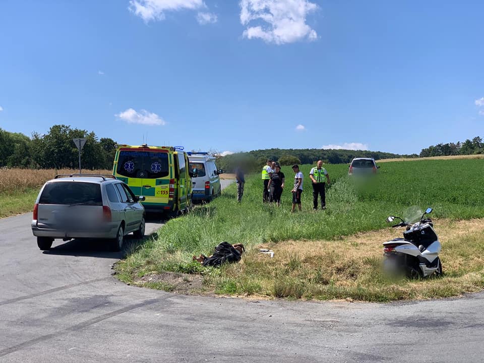 Nehoda osobáku a motocyklu, ke které došlo u obce Měňany, si vyžádala naštěstí jen lehčí zranění motorkáře. Stačila zde jen pozemní posádka ZZS.