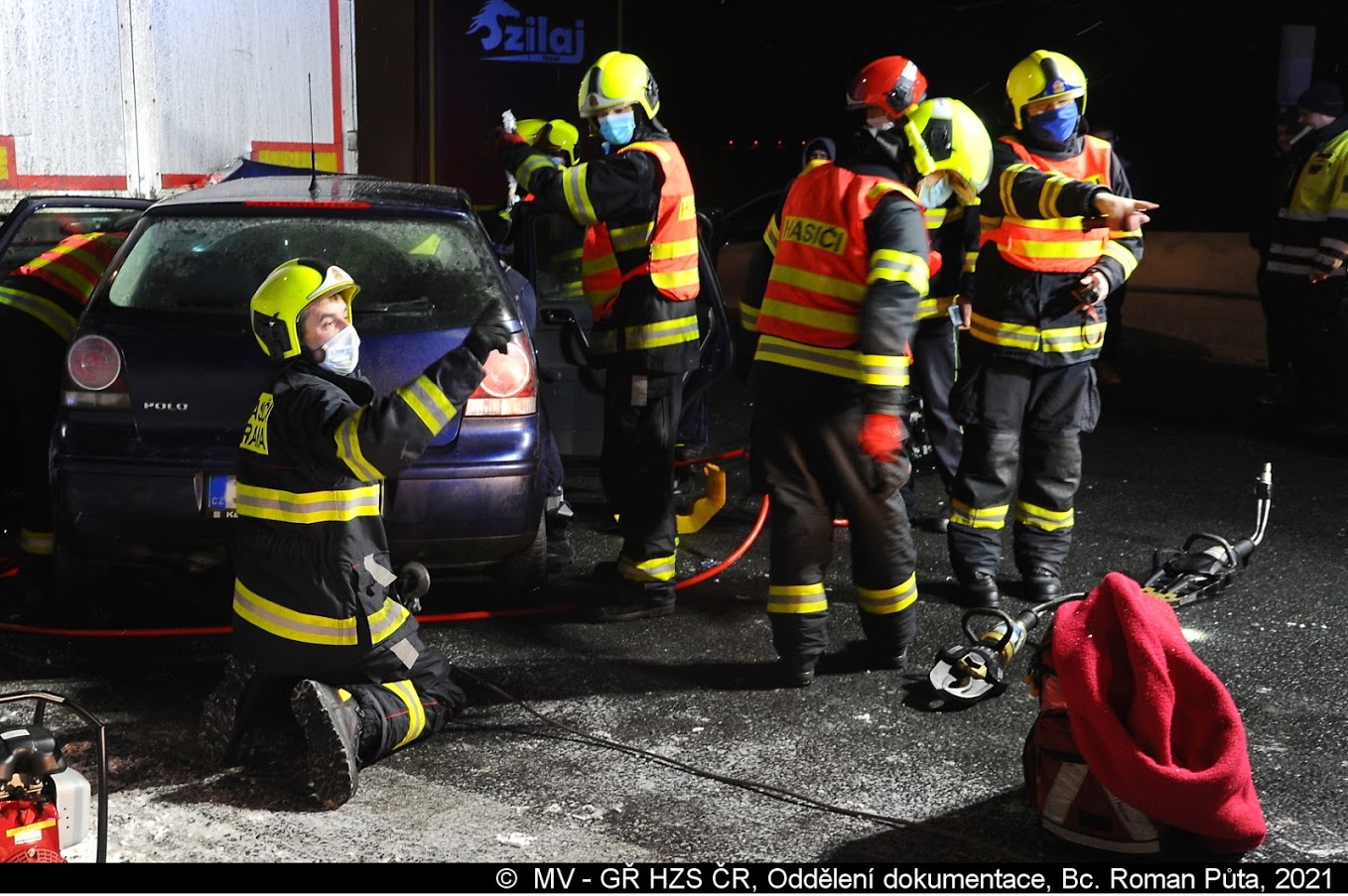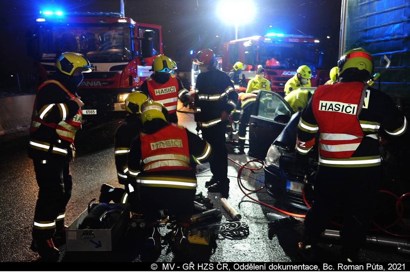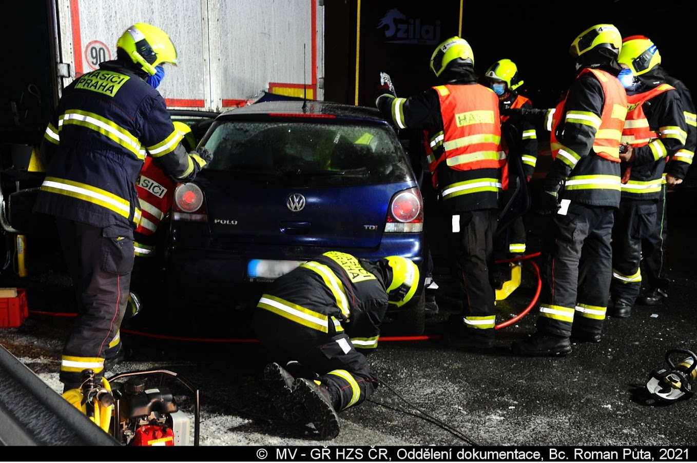 Dne 15.1.2021 vyslalo operační středisko pražských hasičů ve 20:55 hod jednotku z Chodova a Krče k dopravní nehodě osobního a nákladního automobilu na dálnici D1 na 4,5. km ve směru z Prahy.