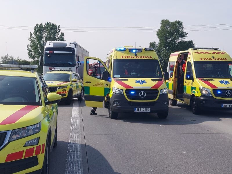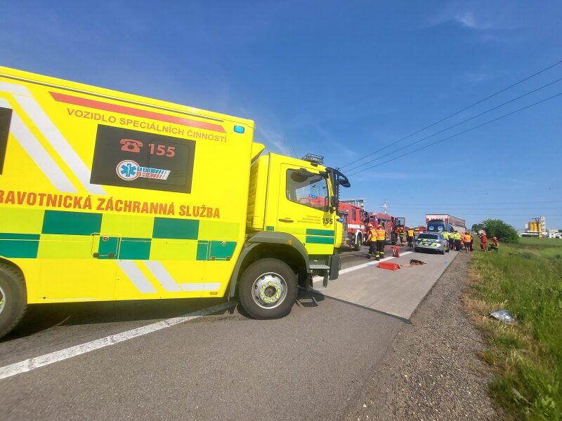 Nedaleko Brna se 29. 5. 2023 dopoledne srazila dodávka s kamionem, naše operační středisko vyslalo na místo devět prostředků, včetně vrtulníku, velkokapacitní sanitky a inspektora provozu.