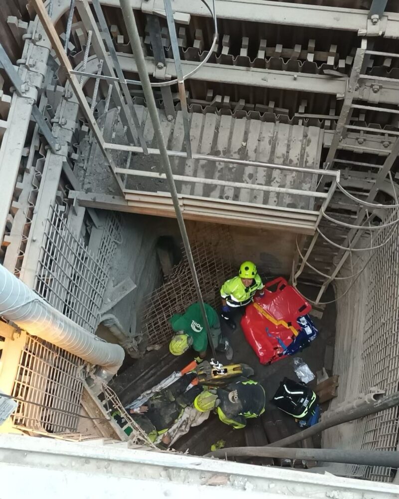 Obklopeni blátem na dně šachty záchranáři pacienta zajistili, včetně krčního límce, žilního vstupu a zjištění vitálních funkcí, a imobilizovali ve vakuové matraci, což mu alespoň částečně pomohlo od bolesti. To už byli na místě i kolegové hasiči, s jejichž pomocí jsme pacienta umístili do další vakuové matrace a na rigidní plastové desce vytáhli nahoru přes hák, který sloužil na stavbě k transportu materiálu.