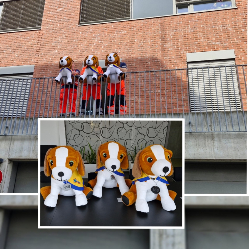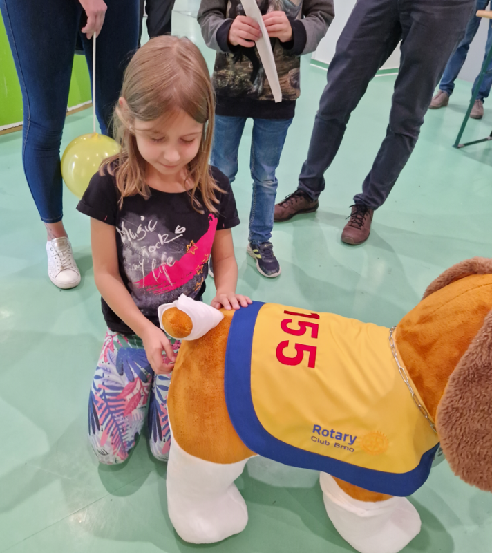 Ty s sebou vozíme na osvětové akce, kde učíme první pomoc. Plyšoví psi jsou vlastně jakýmisi figuranty, děti si na nich vyzkouší obvazování, aplikaci injekce, nebo pejska jen pohladí a „uklidní“. Původní stojící Defíci teď mají tři nové sedící kamarády. Budou se nám hodit, při nejbližší příležitosti s námi vyrazí „do společnosti“. Velké psy pro nás dlouhodobě vyrábí Charita Opava, rádi jsme tuto složku Diecézní charity ostravsko-opavské podpořili, jejich chráněné dílny totiž dávají práci téměř dvěma stovkám handikepovaných, a to moc chválíme.