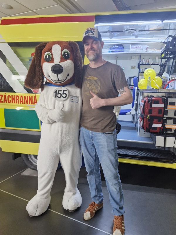 Abychom menším dětem alespoň trochu ulehčili v těchto zátěžových situacích, vozíme v sanitce pejska záchranáře. Jmenuje se Defík (odvozeno od defibrilátoru) a může se s ním pochlubit pouze ta naše, jihomoravská záchranka. Letos slaví 5 roků. Tuto plyšovou hračku, kterou můžeme nazvat jakousi psychologickou pomůckou, dáváme těm nejmenším pacientům, aby zmírnila jejich bolest a stres při ošetřování. Někdy je třeba dát hračku i dítěti, které sice nepotřebuje naši péči, ale dostane plyšáka například v situaci, kdy se staráme o někoho z jeho blízkých. Opět jde tedy o snahu zmírnit obavy a napětí. Snažíme se, aby celý proces přednemocniční neodkladné péče byl pro naše malé pacienty co nejméně bolestný a měl co nejmenší následky.