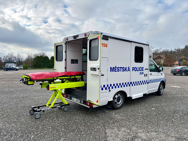 Zlínští strážníci mají nový vůz k převozu opilců do záchytné stanice. Je jím vyřazená sanitky od krajské záchranné služby