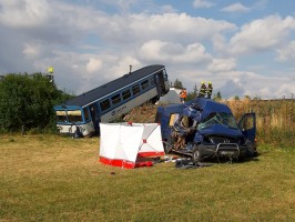 V sobotu 13. července v 15.18 hodin byla na tísňovou linku středočeských hasičů nahlášena dopravní nehoda dodávkového automobilu s osobním vlakem na Rakovnicku.